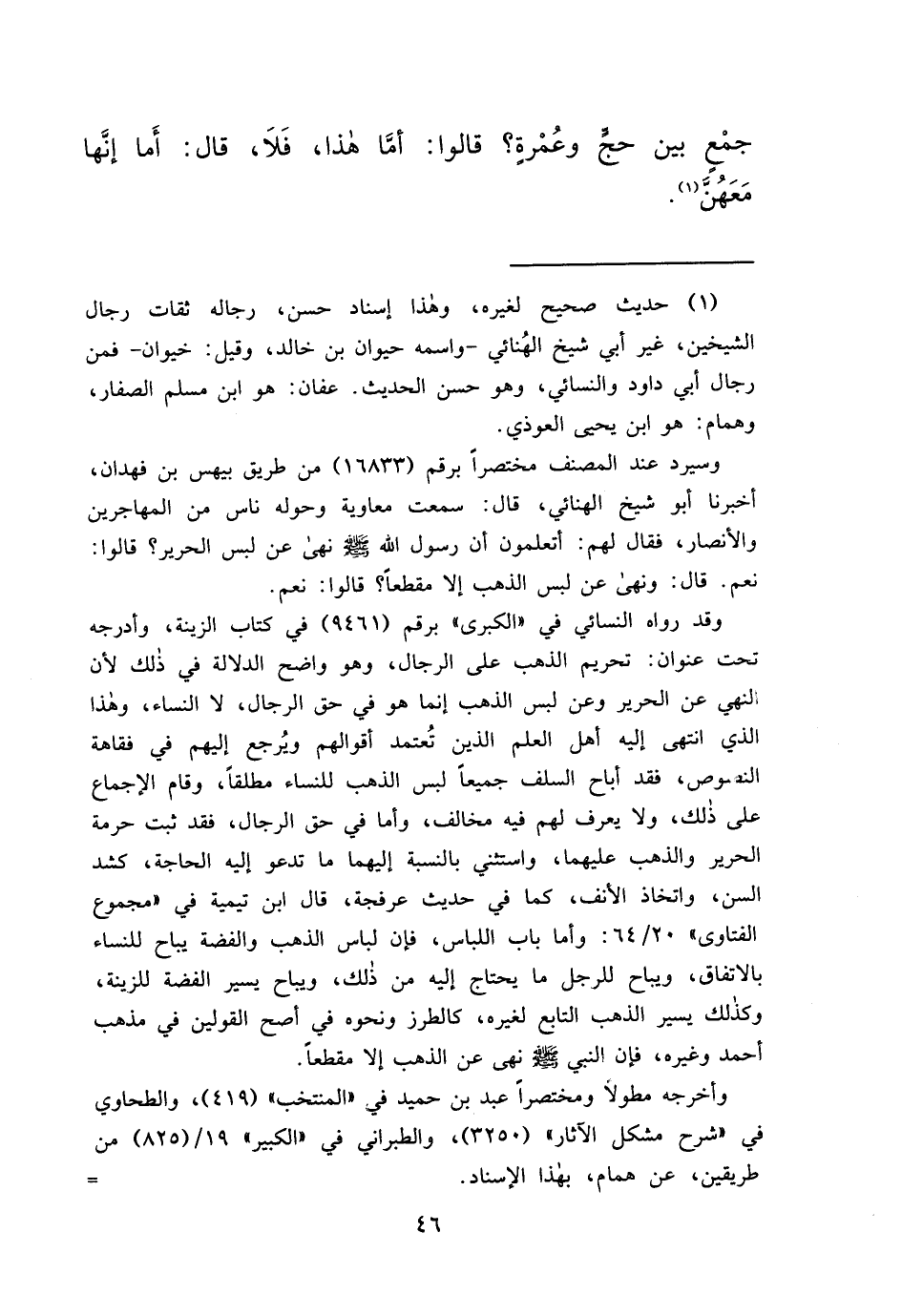 جَمْعٍ بَيْنَ حَجٍّ وَعُمْرَةٍ؟ " قَالُوا: أَمَّا هَذَا، فَلَا، قَالَ: أَمَا إِنَّهَا مَعَهُنَّ (١)