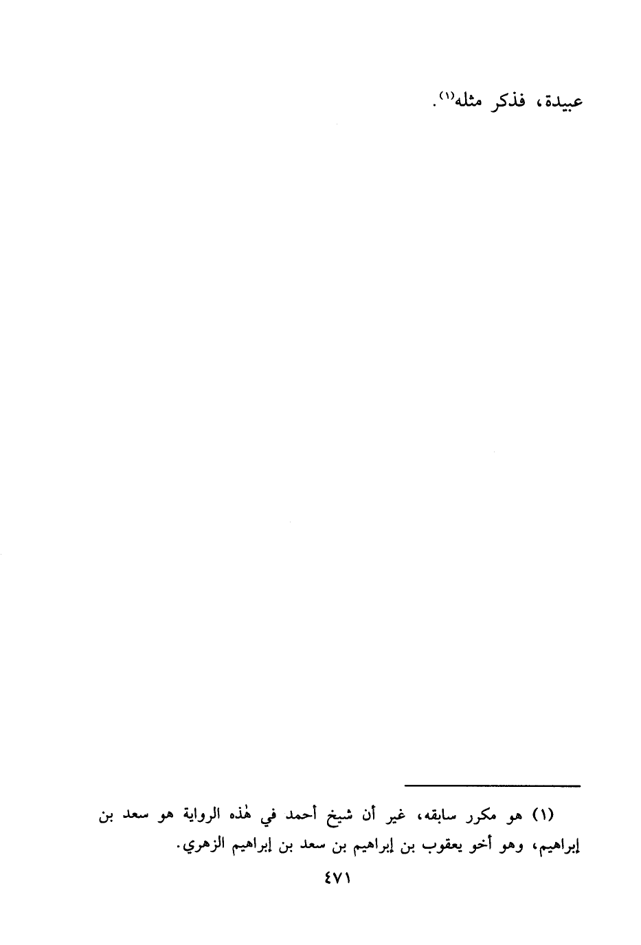 (١) هو مكرر سابقه، غير أن شيخ أحمد في هذه الرواية هو سعد بن إبراهيم، وهو أخو يعقوب بن إبراهيم بن سعد بن إبراهيم الزهري.
