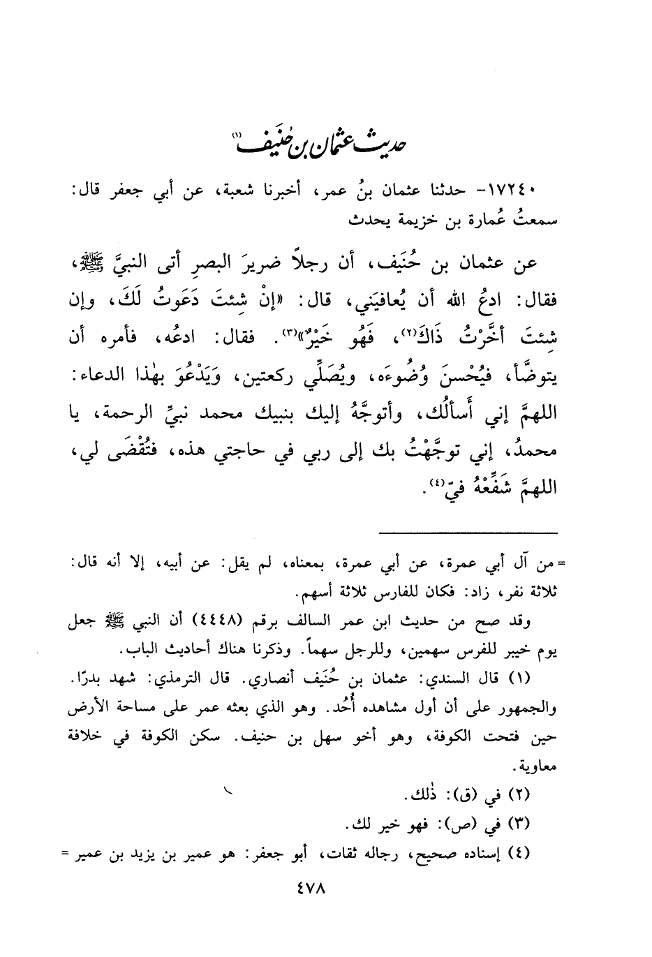 حَدِيثُ عُثْمَانَ بْنِ حُنَيْفٍ (١)