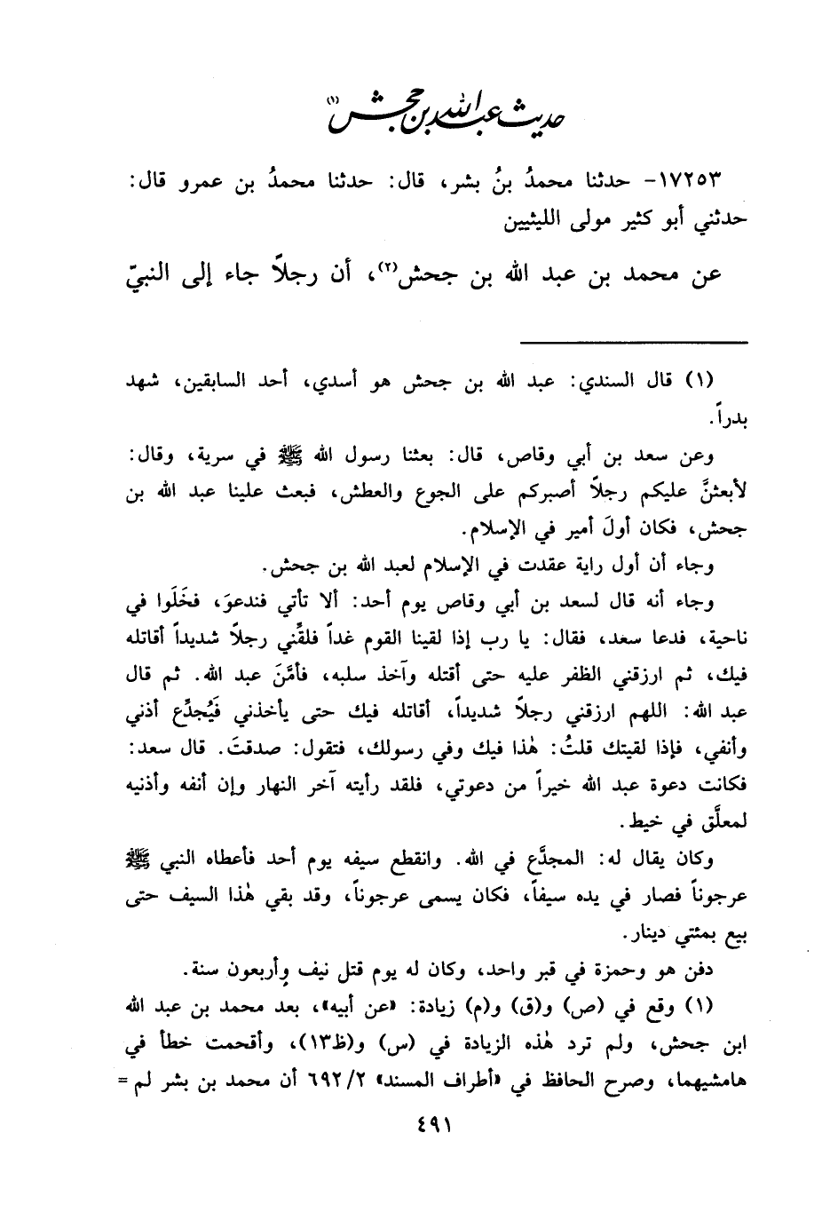 حَدِيثُ عَبْدِ اللهِ بْنِ جَحْشٍ (١)