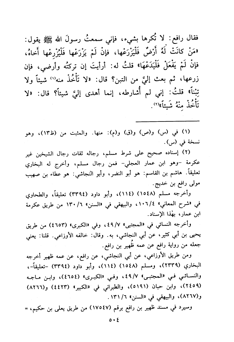 ومن طريق الأوزاعي، عن أبي النجاشي، عن رافع، عن عمه ظهير أخرجه البخاري (٢٣٣٩) ، ومسلم (١٥٤٨) (١١٤) ، وأبو داود (٣٣٩٤) - تعليقاً-، والنسائي في "المجتبى" ٧/٤٩، وفي "الكبرى" (٤٦٥٤) ، وابن ماجه (٢٤٥٩) ، وابن حبان (٥١٩١) ، والطبراني في "الكبير" (٤٤٢٣) و (٨٢٦٦) و (٨٢٦٧) ، والبيهقي في "السنن" ٦/١٣١.
