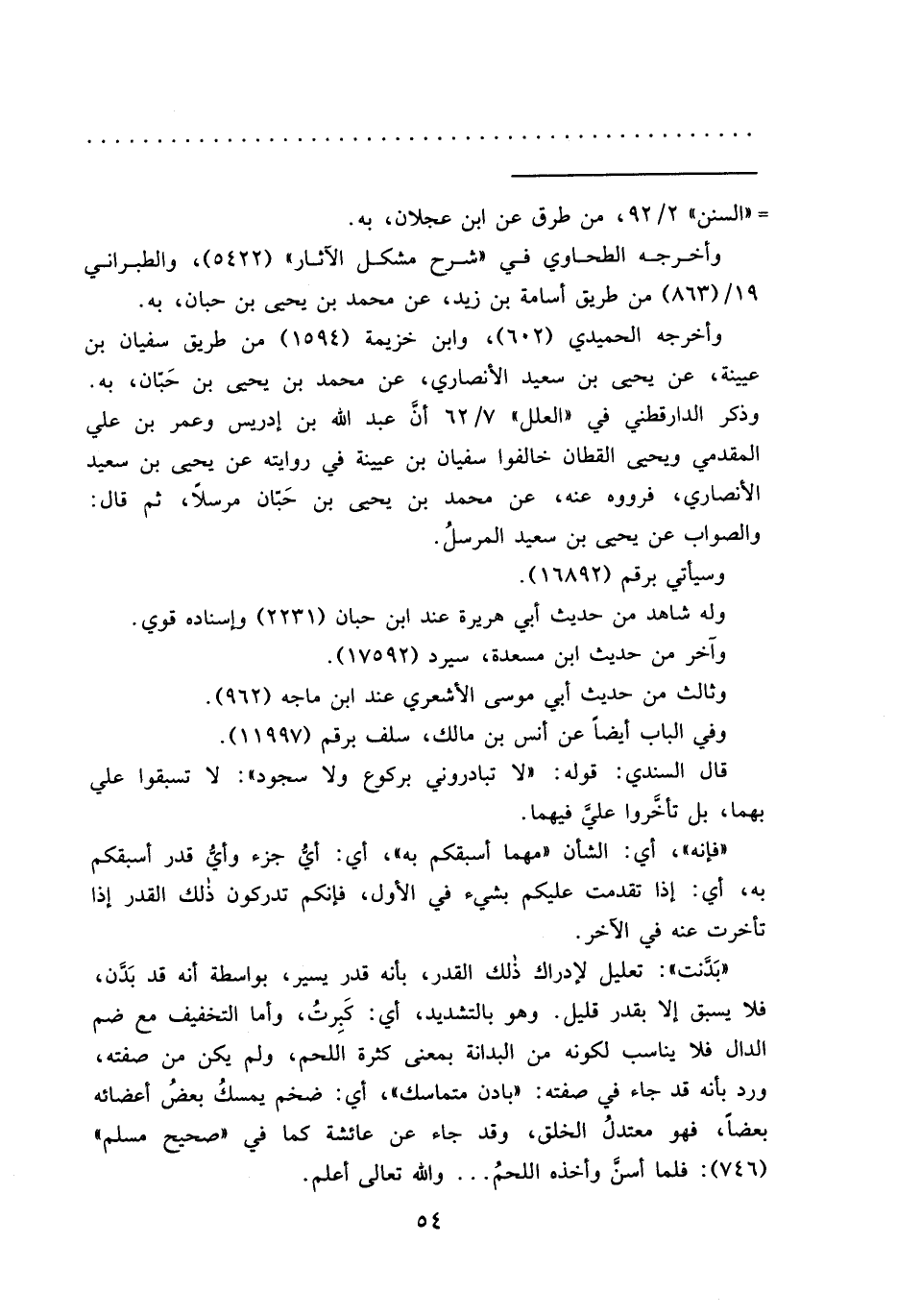 وذكر الدارقطني في "العلل" ٧/٦٢ أنَّ عبد الله بن إدريس وعمر بن علي المقدمي ويحيى القطان خالفوا سفيان بن عيينة في روايته عن يحيى بن سعيد الأنصاري، فرووه عنه، عن محمد بن يحيى بن حَبّان مرسلاً، ثم قال: والصواب عن يحيى بن سعيد المرسلُ.