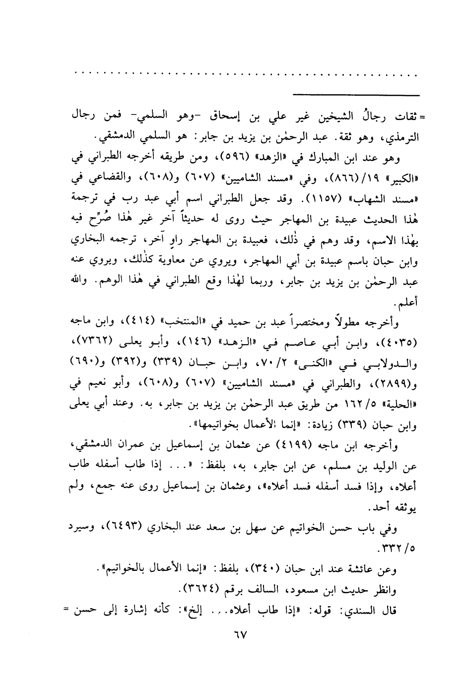 = ثقات رجالُ الشيخين غير علي بن إسحاق- وهو السلمي- فمن رجال الترمذي، وهو ثقة. عبد الرحمن بن يزيد بن جابر: هو السلمي الدمشقي.