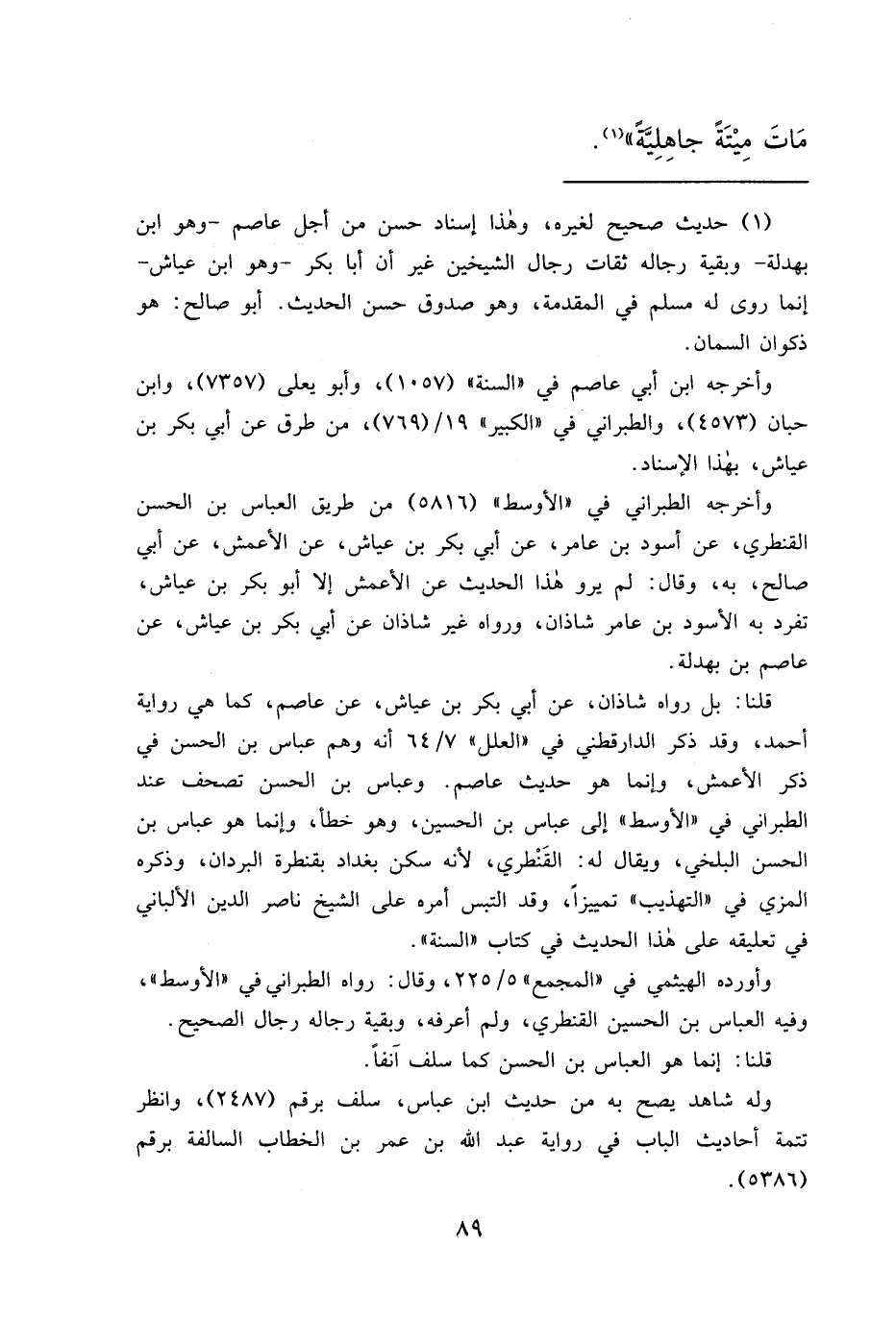 مَاتَ مِيتَةً جَاهِلِيَّةً " (١)