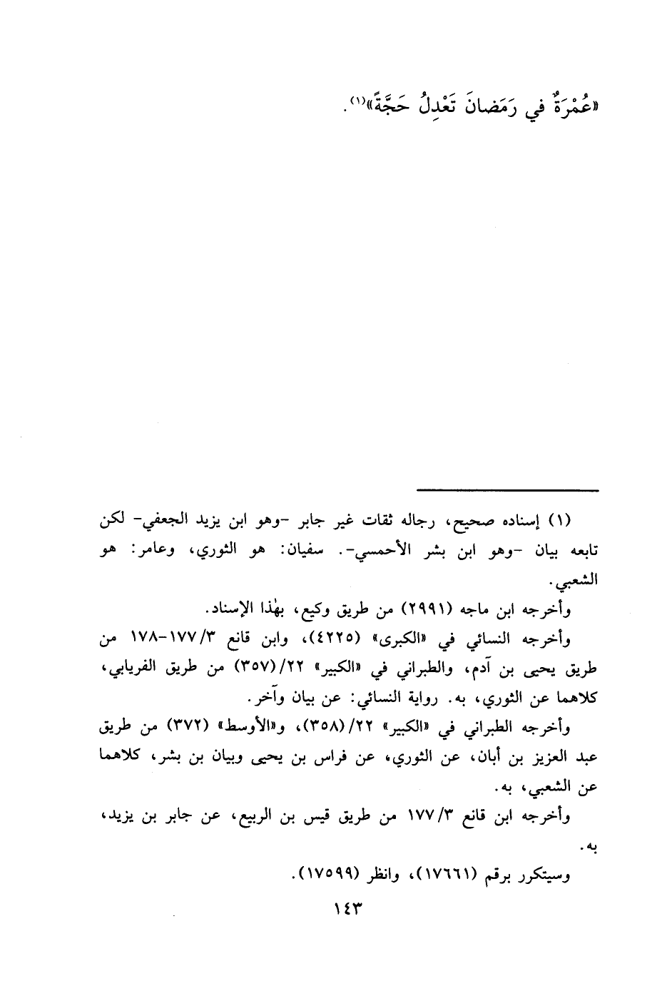 عُمْرَةٌ فِي رَمَضَانَ تَعْدِلُ حَجَّةً " (١)