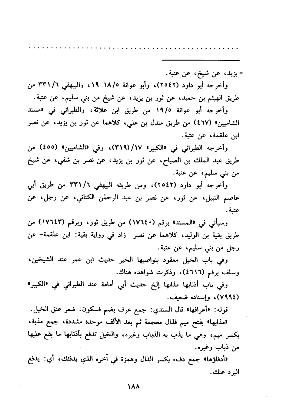 قوله: "أعرافها" قال السندي: جمع عرف بضم فسكون. شعر عنق الخيل.