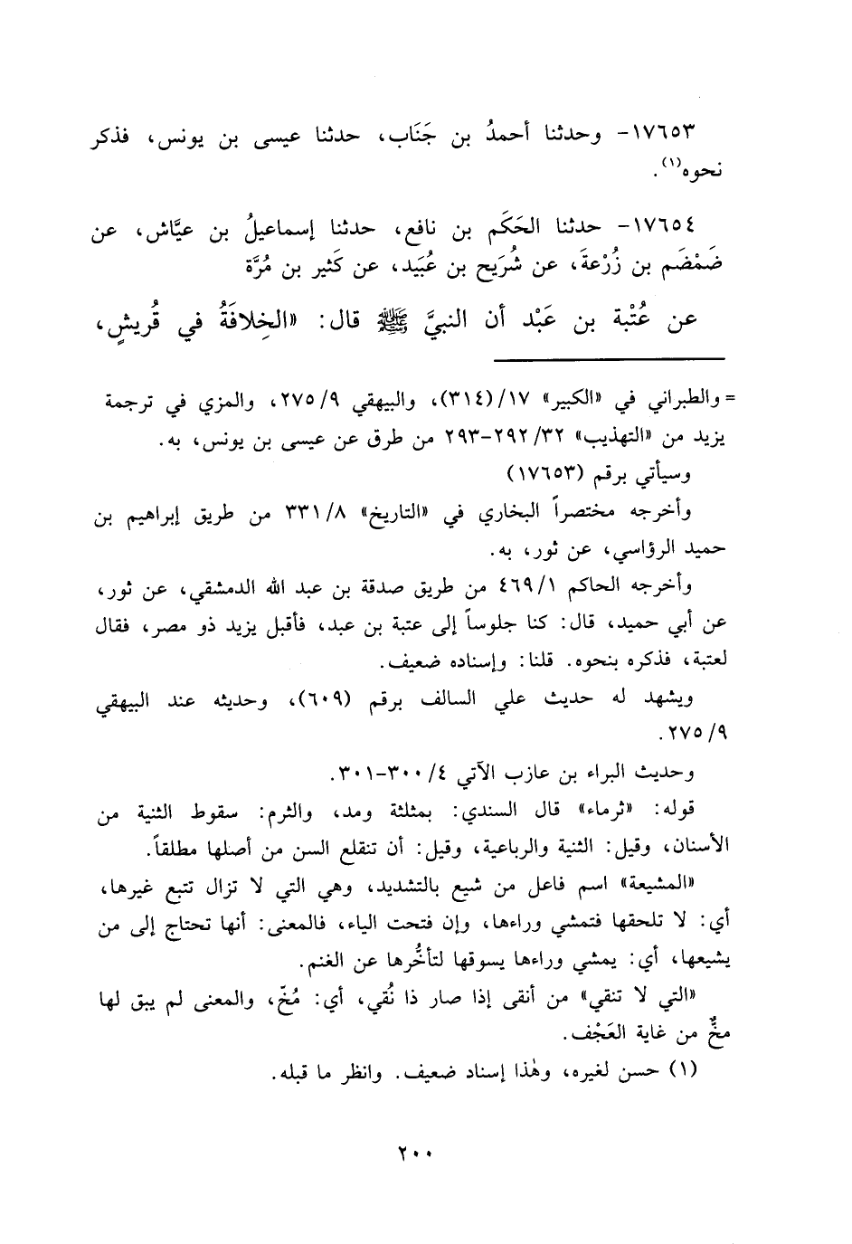 ١٧٦٥٤ - حَدَّثَنَا الْحَكَمُ بْنُ نَافِعٍ، حَدَّثَنَا إِسْمَاعِيلُ بْنُ عَيَّاشٍ، عَنْ ضَمْضَمِ بْنِ زُرْعَةَ، عَنْ شُرَيْحِ بْنِ عُبَيْدٍ، عَنْ كَثِيرِ بْنِ مُرَّةَ، عَنْ عُتْبَةَ بْنِ عَبْدٍ أَنَّ النَّبِيَّ صَلَّى اللهُ عَلَيْهِ وَسَلَّمَ قَالَ: " الْخِلَافَةُ فِي قُرَيْشٍ،