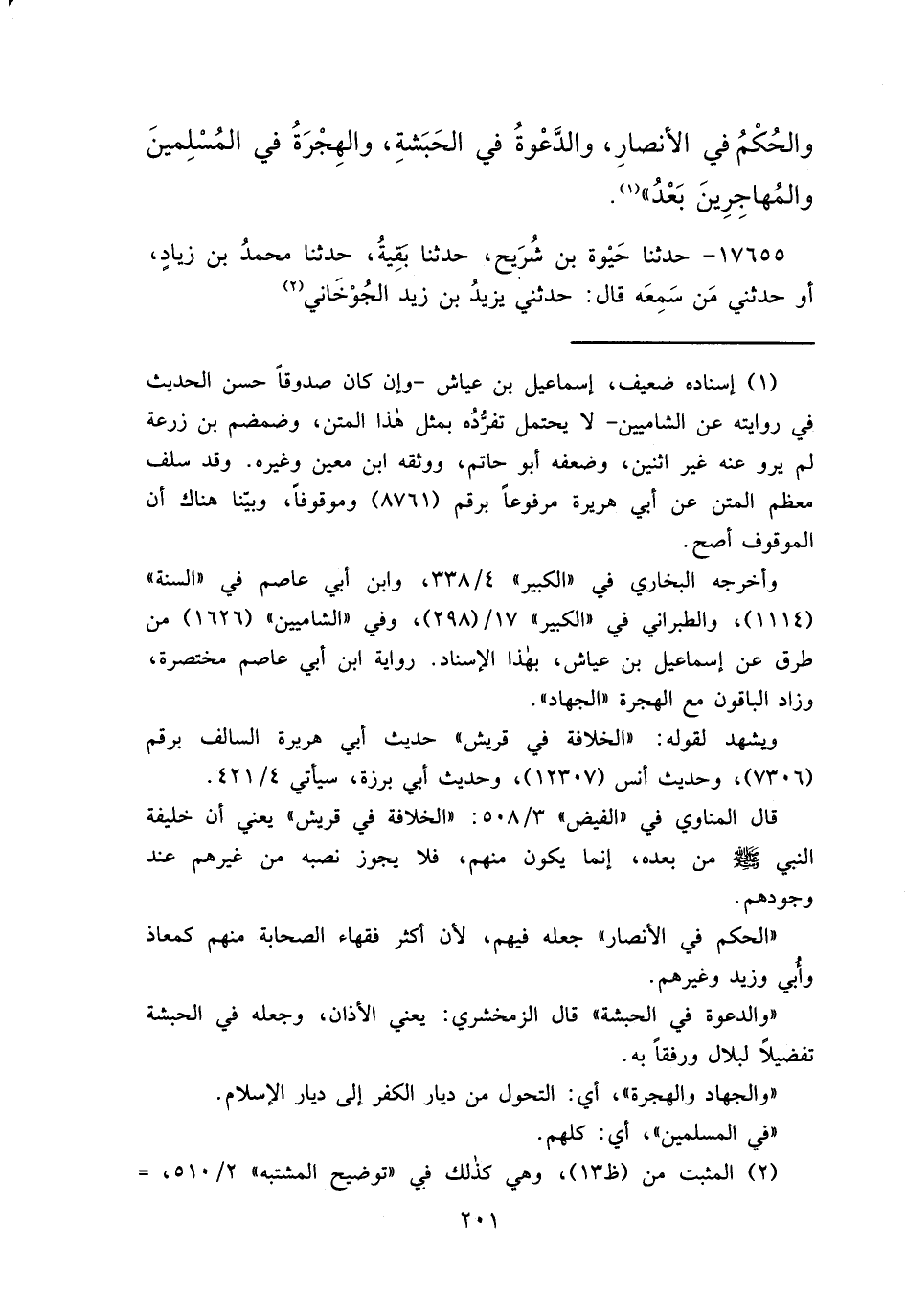 وَالْحُكْمُ فِي الْأَنْصَارِ، وَالدَّعْوَةُ فِي الْحَبَشَةِ، وَالْهِجْرَةُ فِي الْمُسْلِمِينَ، وَالْمُهَاجِرِينَ بَعْدُ " (١)