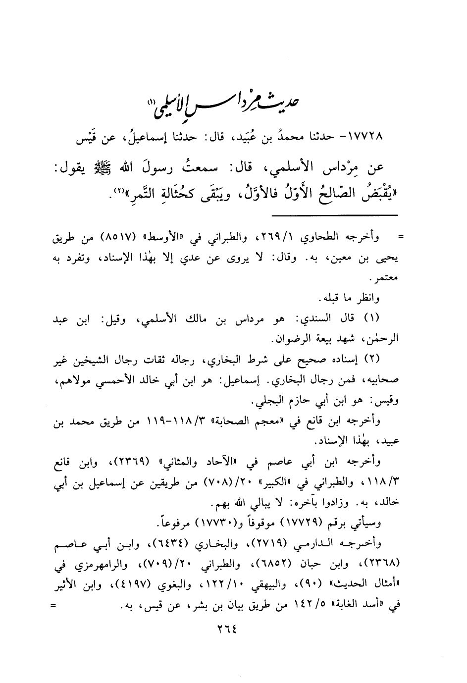 حَدِيثُ مِرْدَاسٍ الْأَسْلَمِيِّ (١)