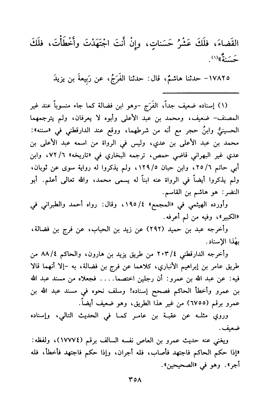 ويغني عنه حديث عمرو بن العاص نفسه السالف برقم (١٧٧٧٤) ، ولفظه: "إذا حكم الحاكم فاجتهد فأصاب، فله أجران، وإذا حكم فاجتهد فأخطأ، فله أجر". وهو في "الصحيحين".
