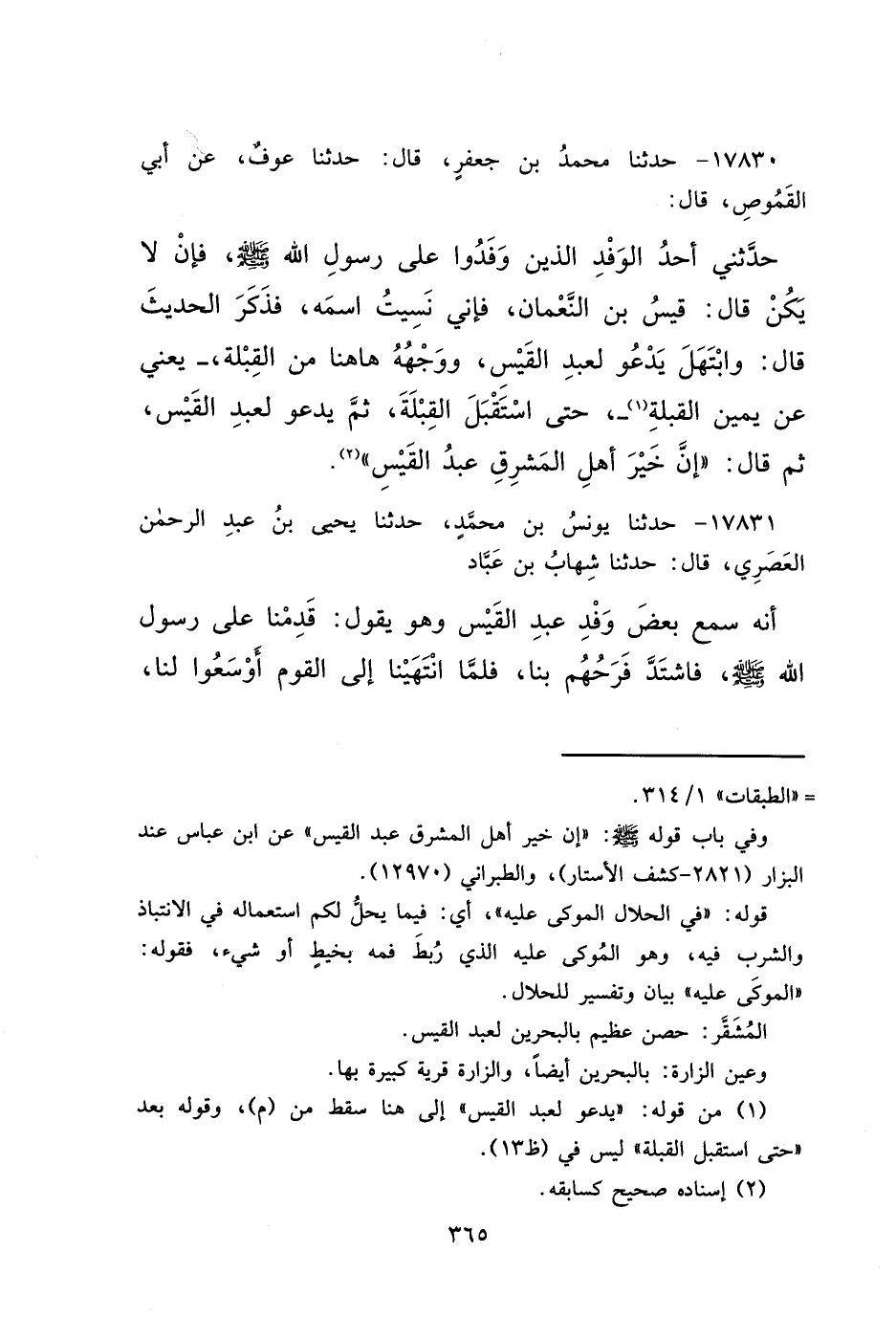 ١٧٨٣٠ - حَدَّثَنَا مُحَمَّدُ بْنُ جَعْفَرٍ، قَالَ: حَدَّثَنَا عَوْفٌ، عَنْ أَبِي الْقَمُوصِ، قَالَ: حَدَّثَنِي أَحَدُ الْوَفْدِ الَّذِينَ وَفَدُوا عَلَى رَسُولِ اللهِ صَلَّى اللهُ عَلَيْهِ وَسَلَّمَ، - فَإِنْ لَا يَكُنْ قَالَ: قَيْسَ بْنَ النُّعْمَانِ، فَإِنِّي نَسِيتُ اسْمَهُ، فَذَكَرَ الْحَدِيثَ - قَالَ: وَابْتَهَلَ يَدْعُو لِعَبْدِ الْقَيْسِ وَوَجْهُهُ هَاهُنَا مِنَ الْقِبْلَةِ، - يَعْنِي عَنْ يَمِينِ الْقِبْلَةِ (١) حَتَّى اسْتَقْبَلَ الْقِبْلَةَ ثُمَّ يَدْعُو لِعَبْدِ الْقَيْسِ ثُمَّ قَالَ: " إِنَّ خَيْرَ أَهْلِ الْمَشْرِقِ عَبْدُ الْقَيْسِ " (٢)
