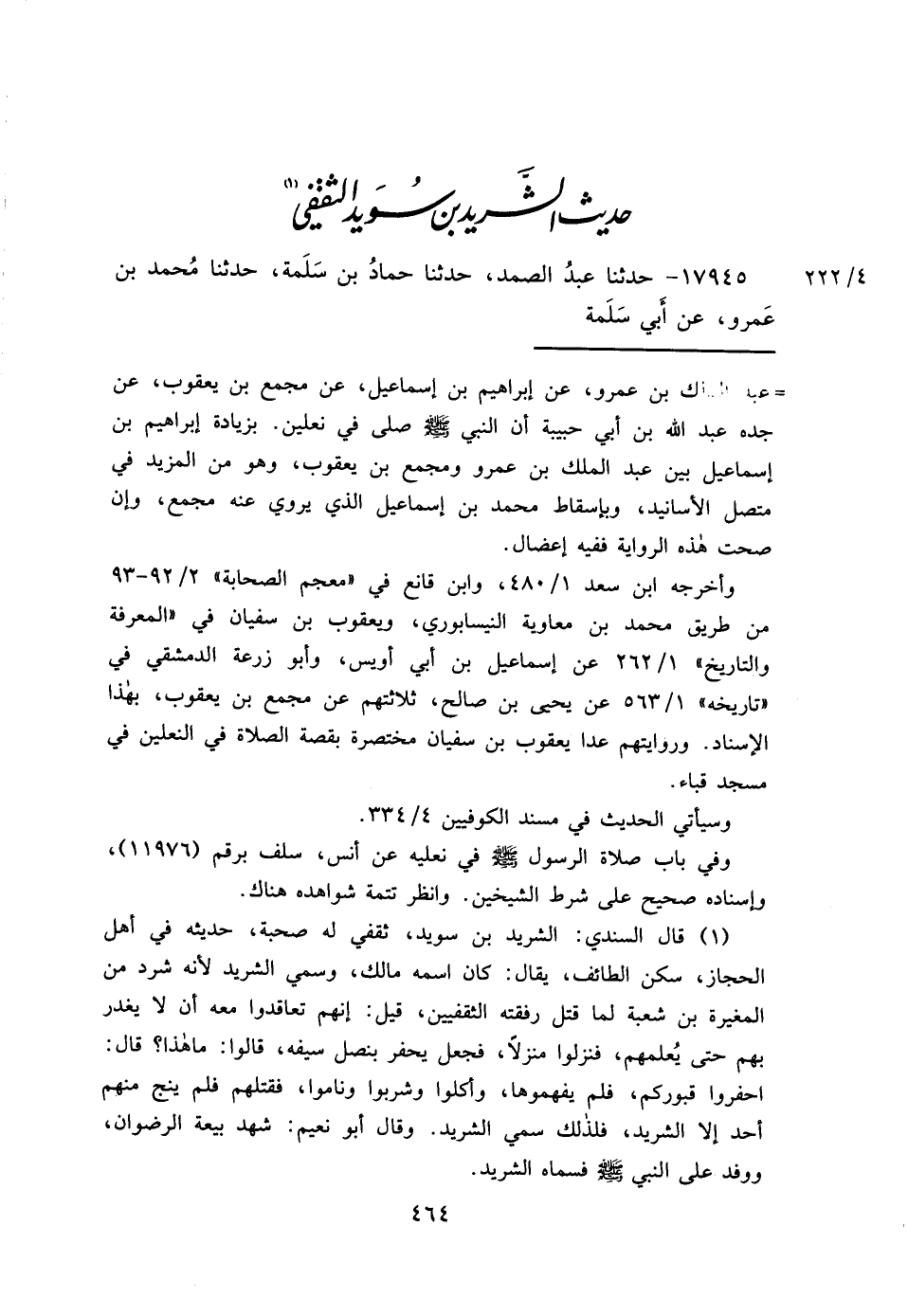 حَدِيثُ الشَّرِيدِ بْنِ سُوَيْدٍ الثَّقَفِيِّ (١)