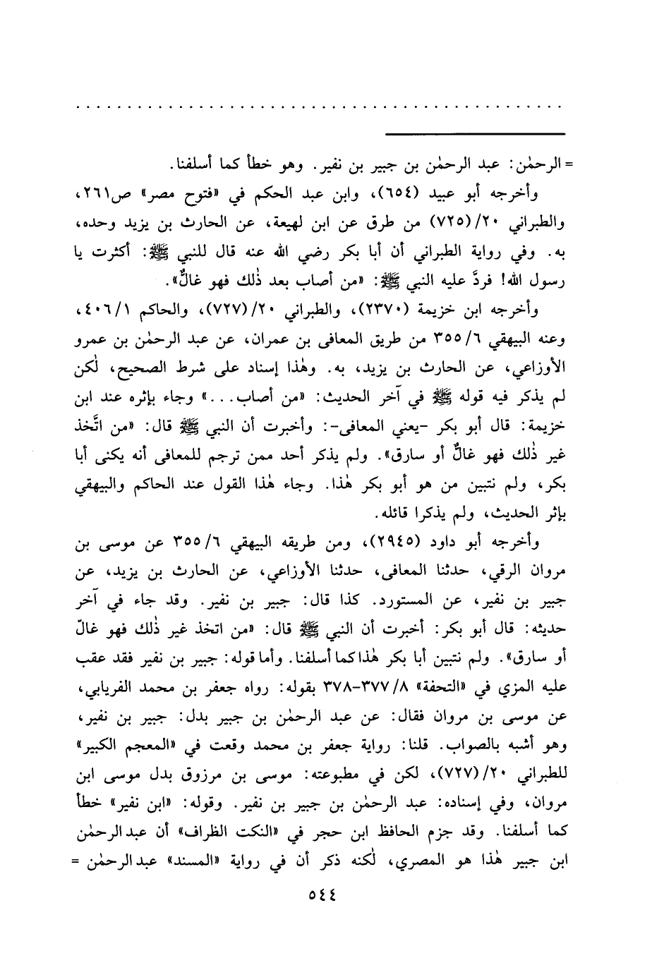 = الرحمن: عبد الرحمن بن جبير بن نفير. وهو خطأ كما أسلفنا.