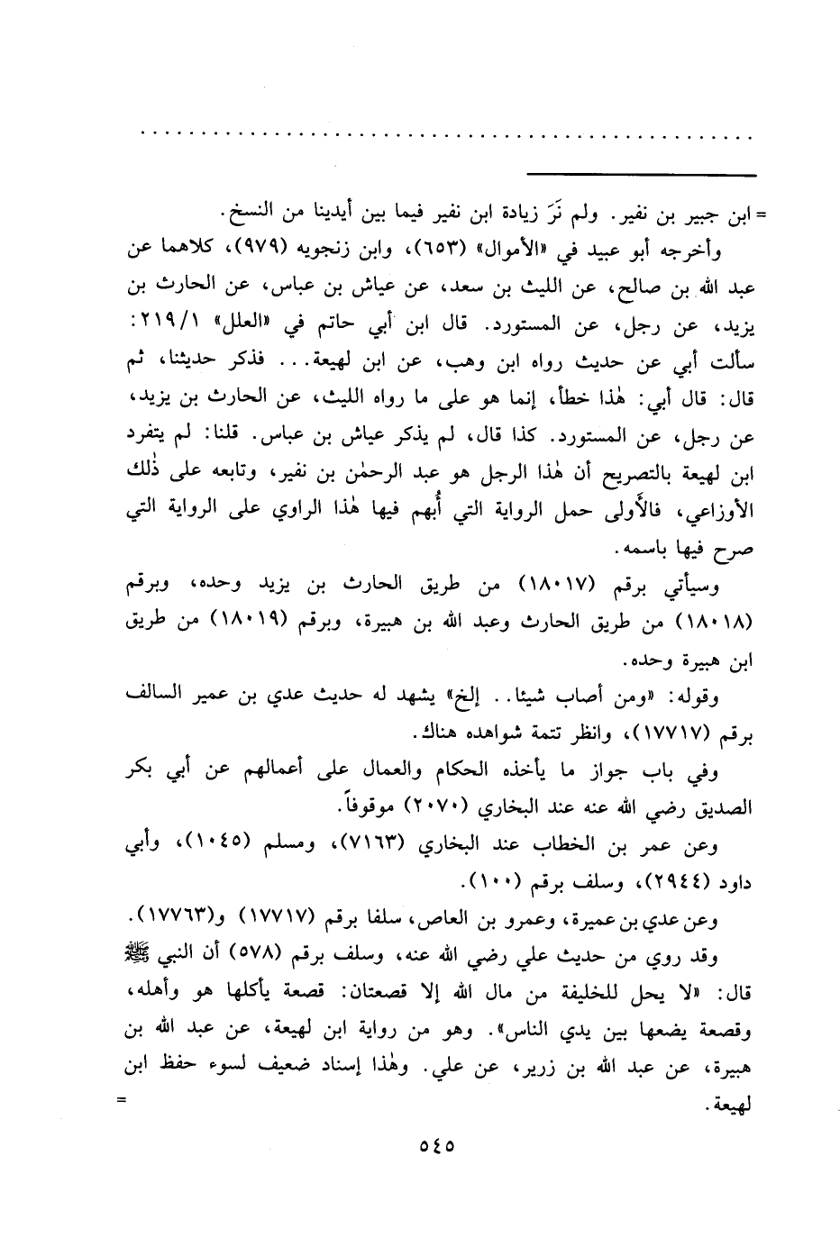 = ابن جبير بن نفير. ولم نَرَ زيادة ابن نفير فيما بين أيدينا من النسخ.