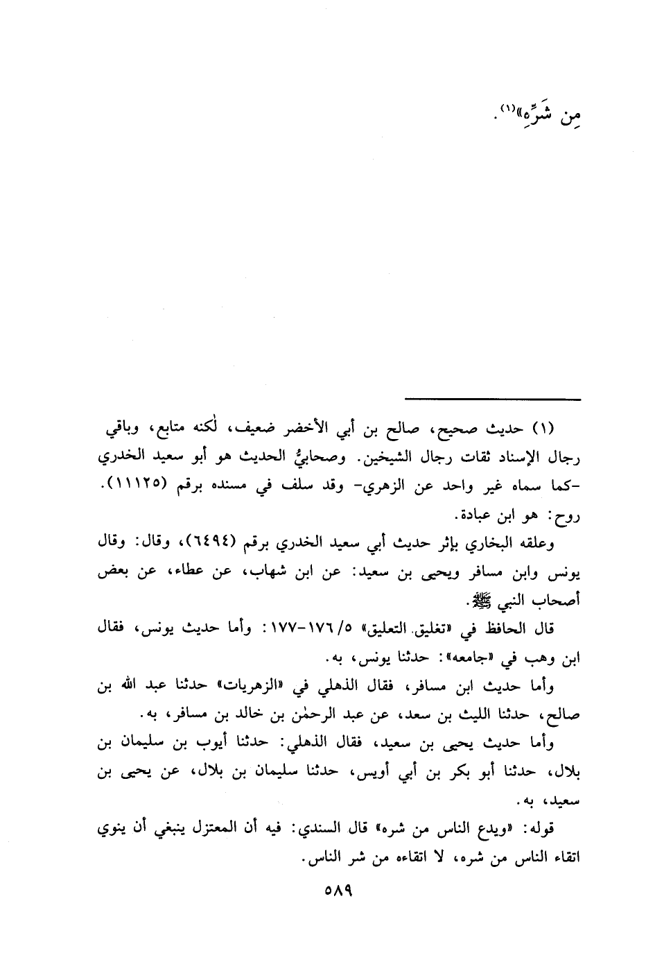 وعلقه البخاري بإثر حديث أبي سعيد الخدري برقم (٦٤٩٤) ، وقال: وقال يونس وابن مسافر ويحيى بن سعيد: عن ابن شهاب، عن عطاء، عن بعض أصحاب النبي صَلَّى اللهُ عَلَيْهِ وَسَلَّمَ.