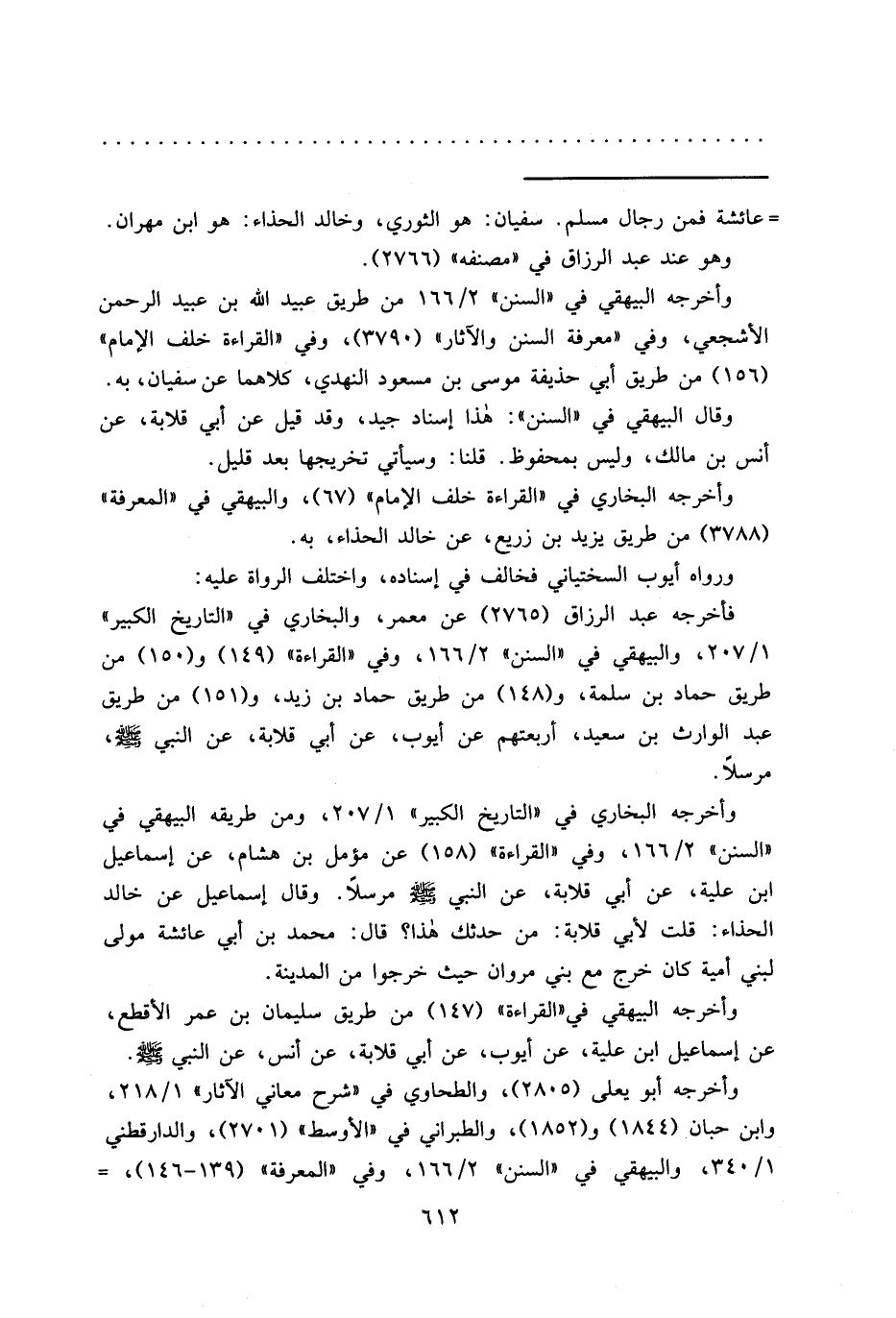 وأخرجه البخاري في "التاريخ الكبير" ١/٢٠٧، ومن طريقه البيهقي في "السنن" ٢/١٦٦، وفي "القراءة" (١٥٨) عن مؤمل بن هشام، عن إسماعيل ابن علية، عن أبي قلابة، عن النبي صَلَّى اللهُ عَلَيْهِ وَسَلَّمَ مرسلاً. وقال إسماعيل عن خالد الحذاء: قلت لأبي قلابة: من حدثك هذا؟ قال: محمد بن أبي عائشة مولى لبني أمية كان خرج مع بني مروان حيث خرجوا من المدينة.