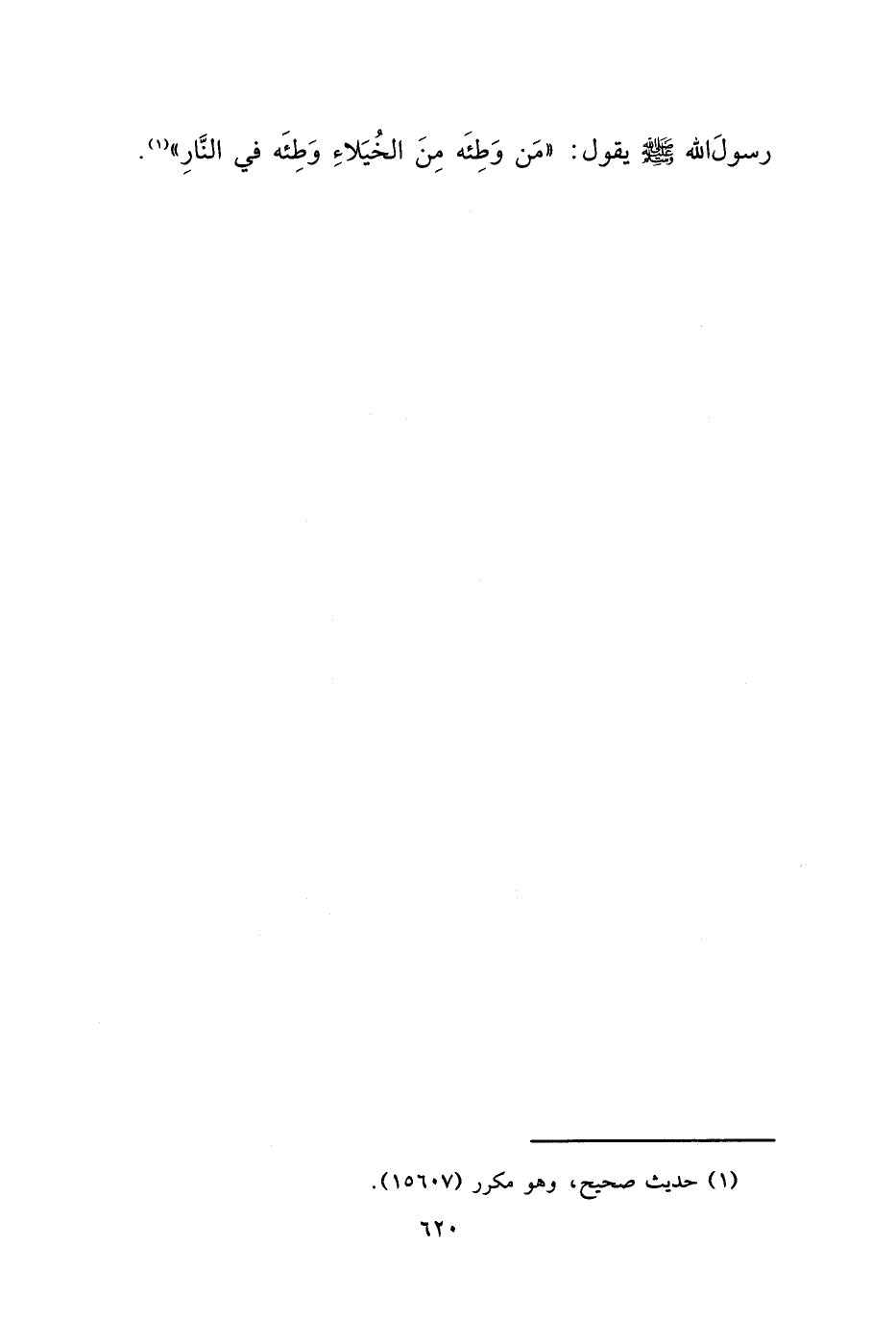 رَسُولَ اللهِ صَلَّى اللهُ عَلَيْهِ وَسَلَّمَ، يَقُولُ: " مَنْ وَطِئَهُ مِنَ الْخُيَلَاءِ، وَطِئَهُ فِي النَّارِ " (١)