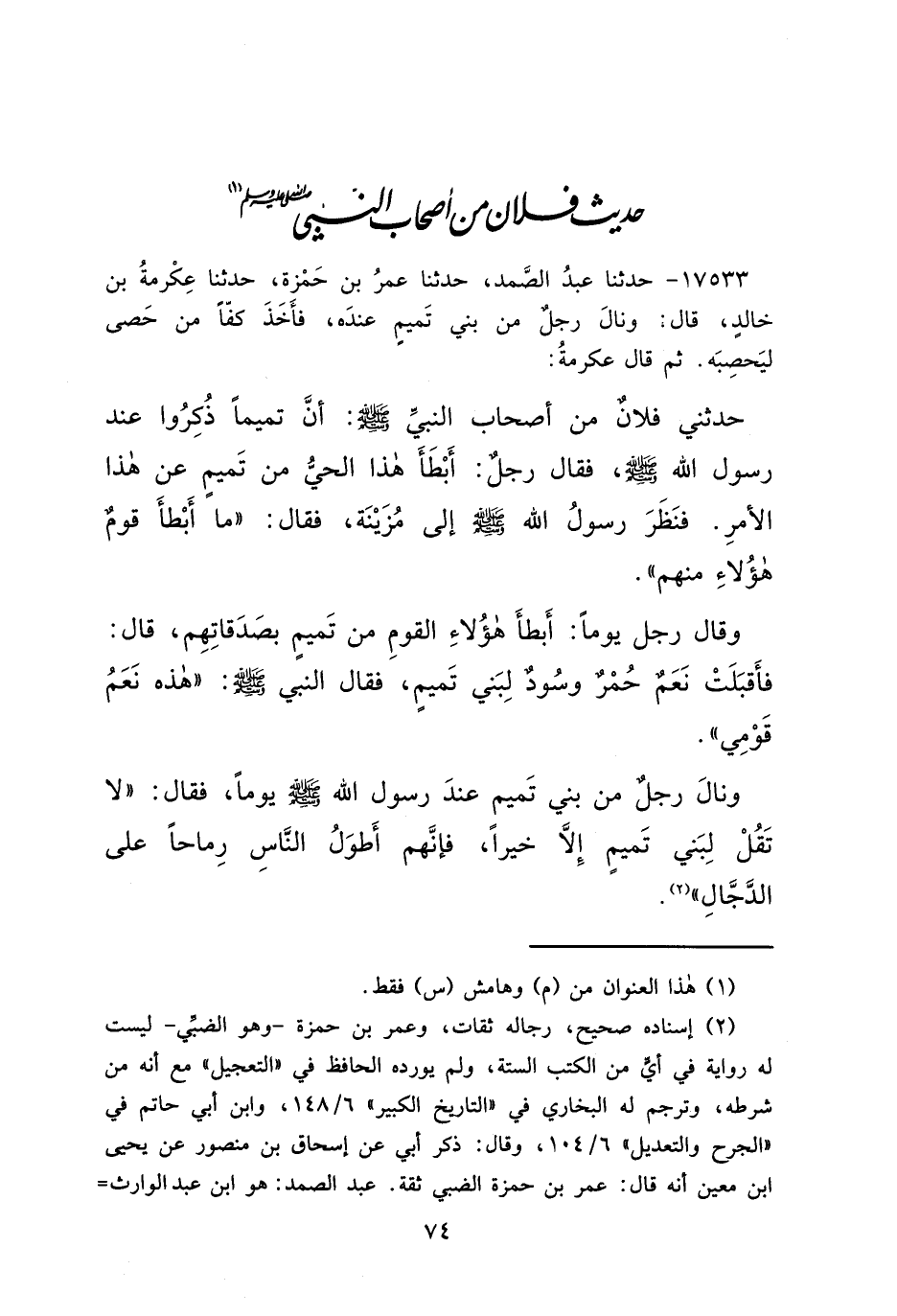 حَدِيثُ فُلَانٍ مِنْ أَصْحَابِ النَّبِيِّ صَلَّى اللهُ عَلَيْهِ وَسَلَّمَ (١)