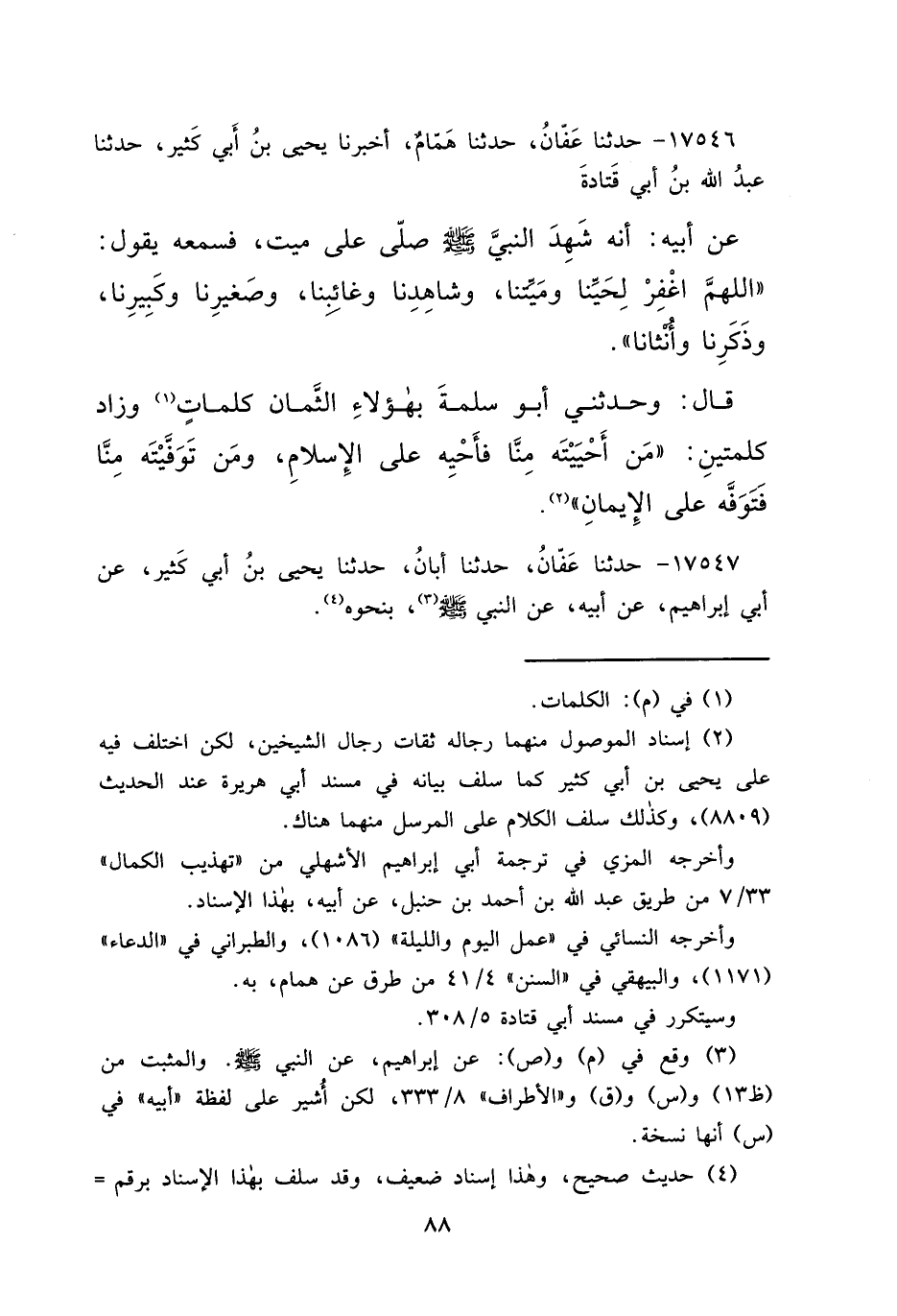 ١٧٥٤٧ - حَدَّثَنَا عَفَّانُ،، حَدَّثَنَا أَبَانُ، حَدَّثَنَا يَحْيَى بْنُ أَبِي كَثِيرٍ، عَنْ أَبِي إِبْرَاهِيمَ، عَنْ أَبِيهِ عَنِ النَّبِيِّ صَلَّى اللهُ عَلَيْهِ وَسَلَّمَ (٣) ، بِنَحْوِهِ (٤)