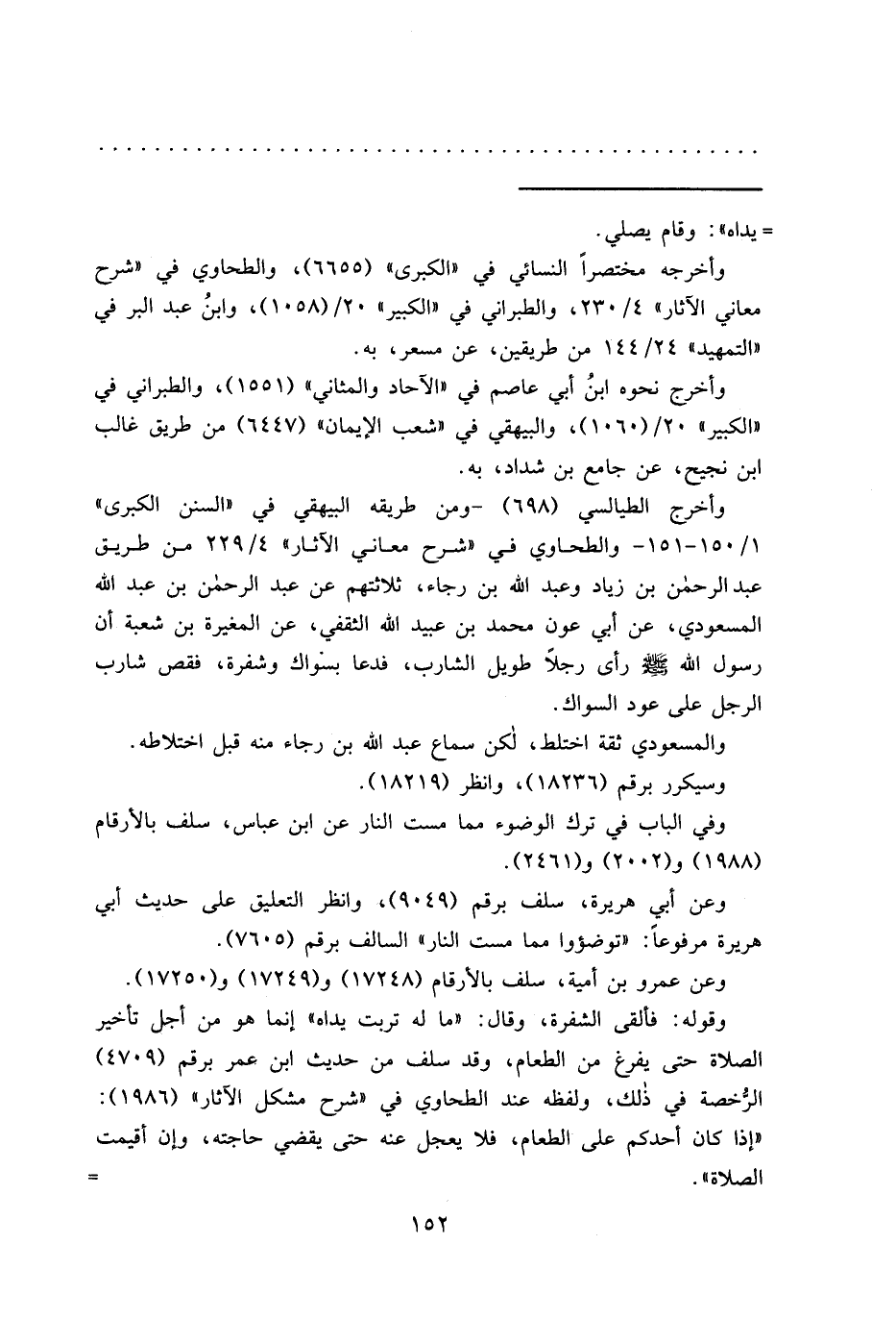 وأخرج الطيالسي (٦٩٨) - ومن طريقه البيهقي في "السنن الكبرى" ١/١٥٠-١٥١- والطحاوي في "شرح معاني الآثار" ٤/٢٢٩ من طريق عبد الرحمن بن زياد وعبد الله بن رجاء، ثلاثتهم عن عبد الرحمن بن عبد الله المسعودي، عن أبي عون محمد بن عبيد الله الثقفي، عن المغيرة بن شعبة أن