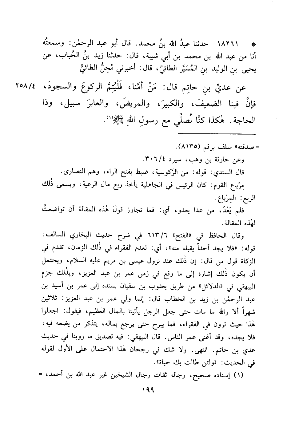 * ١٨٢٦١ - حَدَّثَنَا عَبْدُ اللهِ بْنُ مُحَمَّدٍ، قَالَ أَبُو عَبْدِ الرَّحْمَنِ، وَسَمِعْتُهُ أَنَا مِنْ عَبْدِ اللهِ بْنِ مُحَمَّدِ بْنِ أَبِي شَيْبَةَ، قَالَ: حَدَّثَنَا زَيْدُ بْنُ الْحُبَابِ، عَنْ يَحْيَى بْنِ الْوَلِيدِ بْنِ الْمُسَيَّرِ الطَّائِيِّ، قَالَ: أَخْبَرَنِي مُحِلٌّ الطَّائِيُّ، عَنْ عَدِيِّ بْنِ حَاتِمٍ، قَالَ: " مَنْ أَمَّنَا، فَلْيُتِمَّ الرُّكُوعَ وَالسُّجُودَ، فَإِنَّ فِينَا الضَّعِيفَ، وَالْكَبِيرَ، وَالْمَرِيضَ، وَالْعَابِرَ سَبِيلٍ، وَذَا الْحَاجَةِ، هَكَذَا كُنَّا نُصَلِّي مَعَ رَسُولِ اللهِ صَلَّى اللهُ عَلَيْهِ وَسَلَّمَ " (١)
