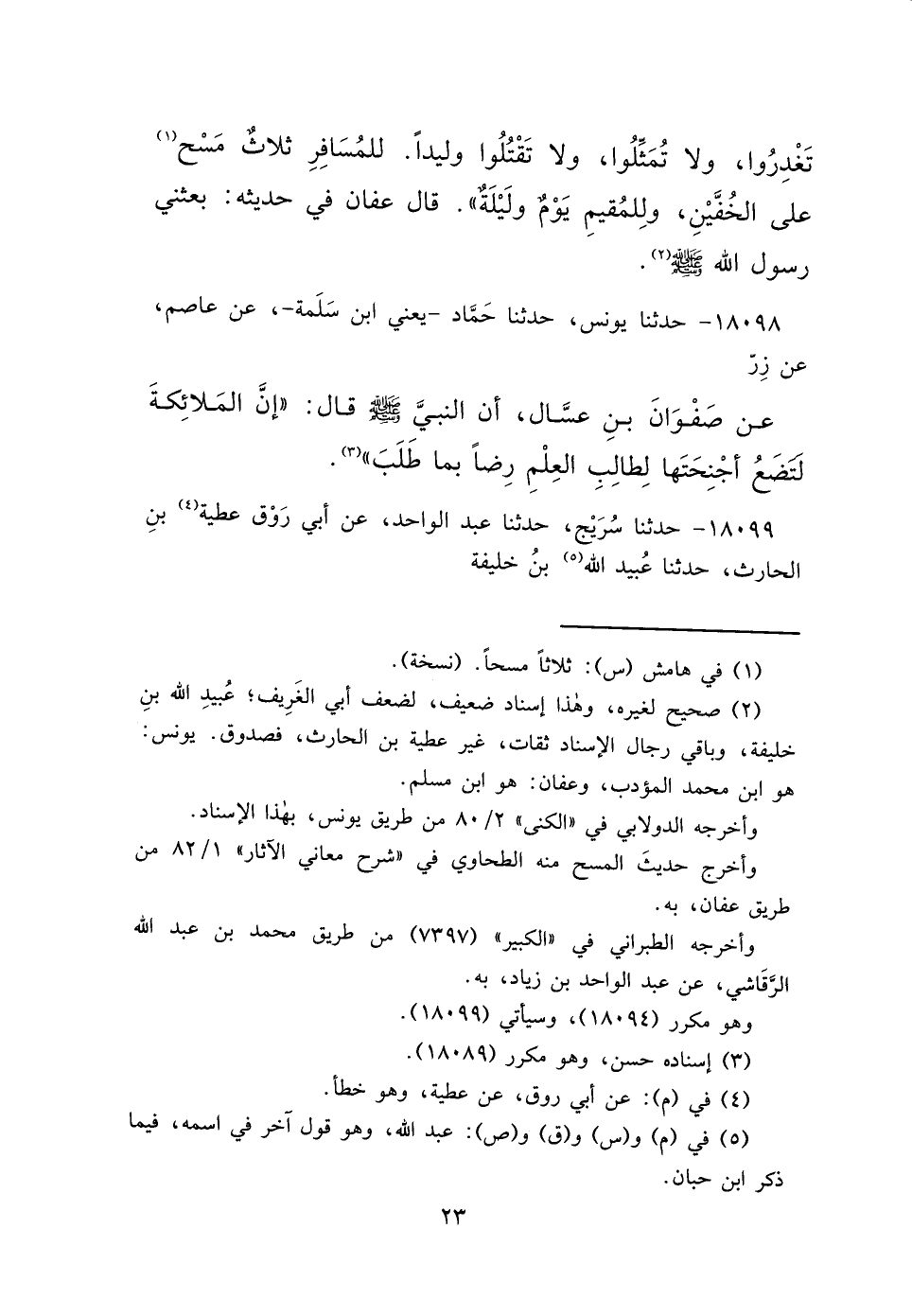 وأخرج حديثَ المسح منه الطحاوي في "شرح معاني الآثار" ١/٨٢ من طريق عفان، به.