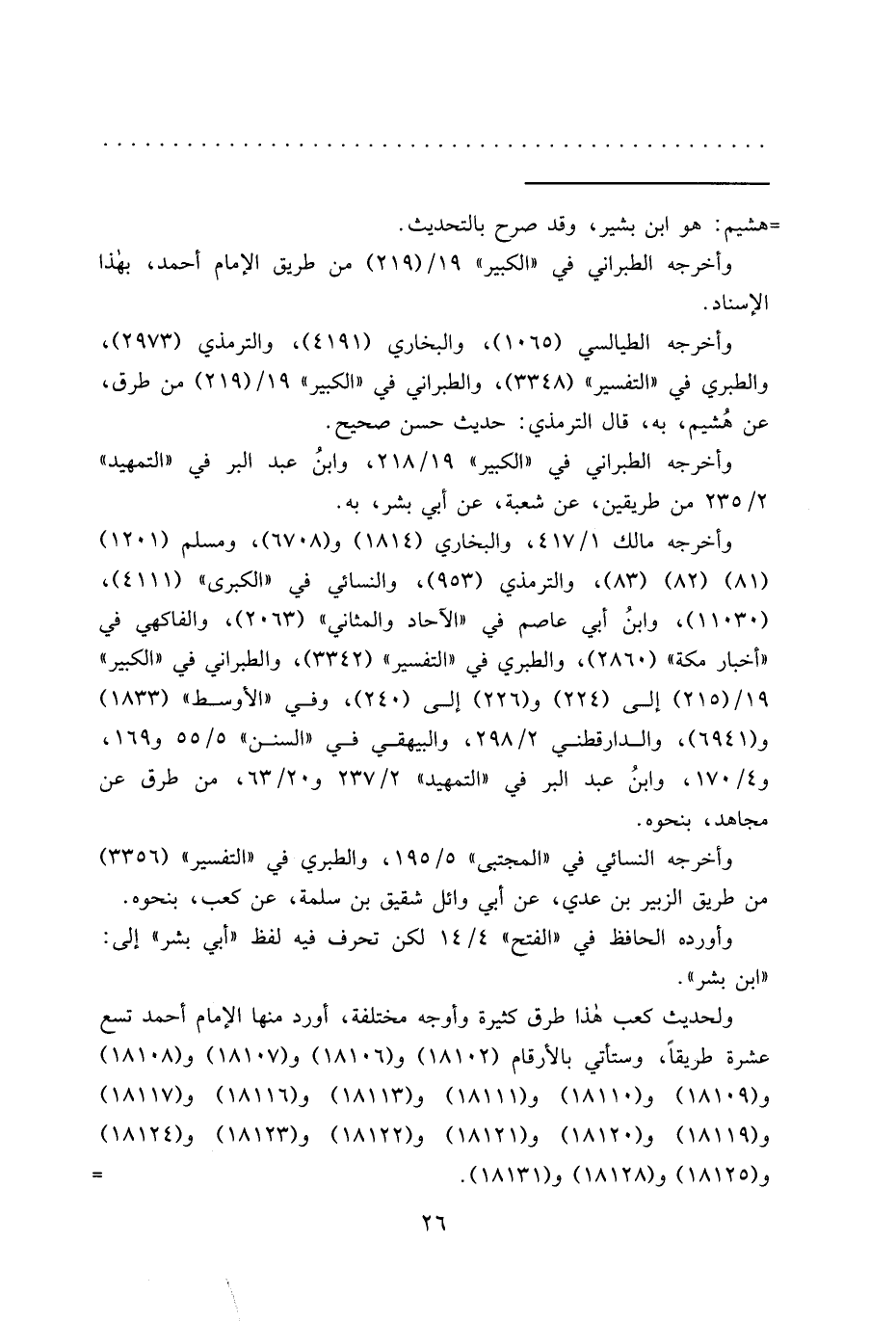 وأورده الحافظ في "الفتح " ٤/١٤ لكن تحرف فيه لفظ "أبي بشر" إلى: "ابن بشر".