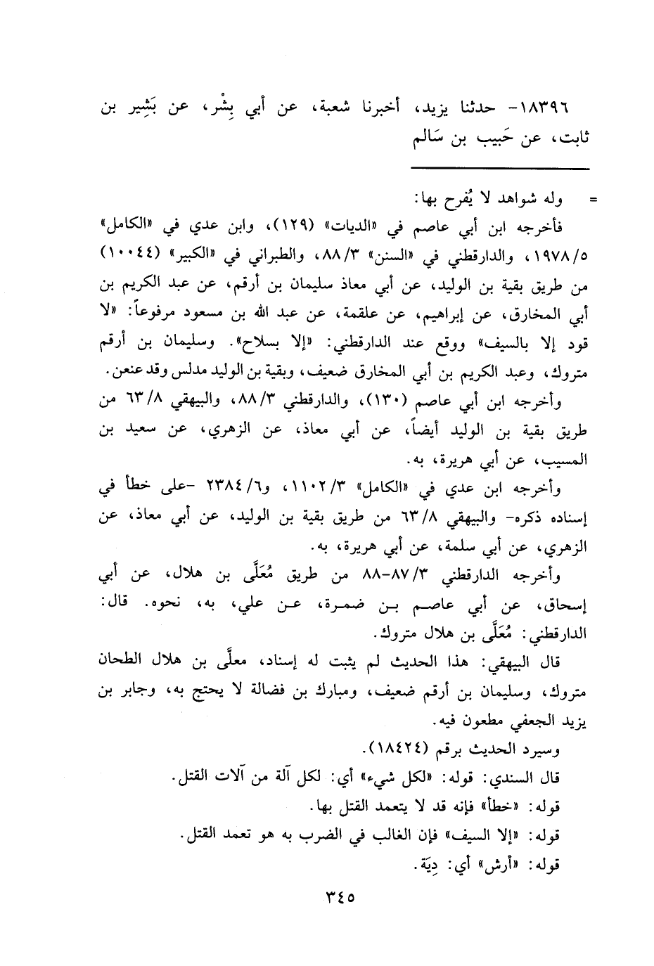 وأخرجه ابن أبي عاصم (١٣٠) ، والدارقطني٣/٨٨، والبيهقي ٨/٦٣ من طريق بقية بن الوليد أيضاً، عن أبي معاذ، عن الزهري، عن سعيد بن المسيب، عن أبي هريرة، به.