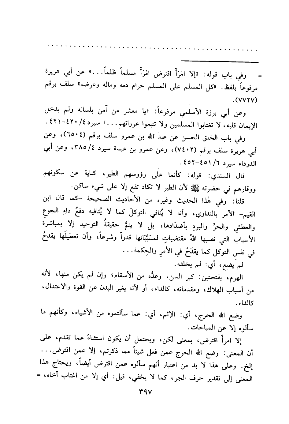 = وفي باب قوله: "إلا امْرَأً اقترض امْرَأً مسلماً ظلماً ... " عن أبي هريرة مرفوعاً بلفظ: "كل المسلم على المسلم حرام دمه وماله وعرضه" سلف برقم (٧٧٢٧) .
