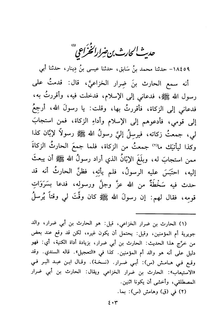 حَدِيثُ الْحَارِثِ بْنِ ضِرَارٍ الْخُزَاعِيِّ (١)