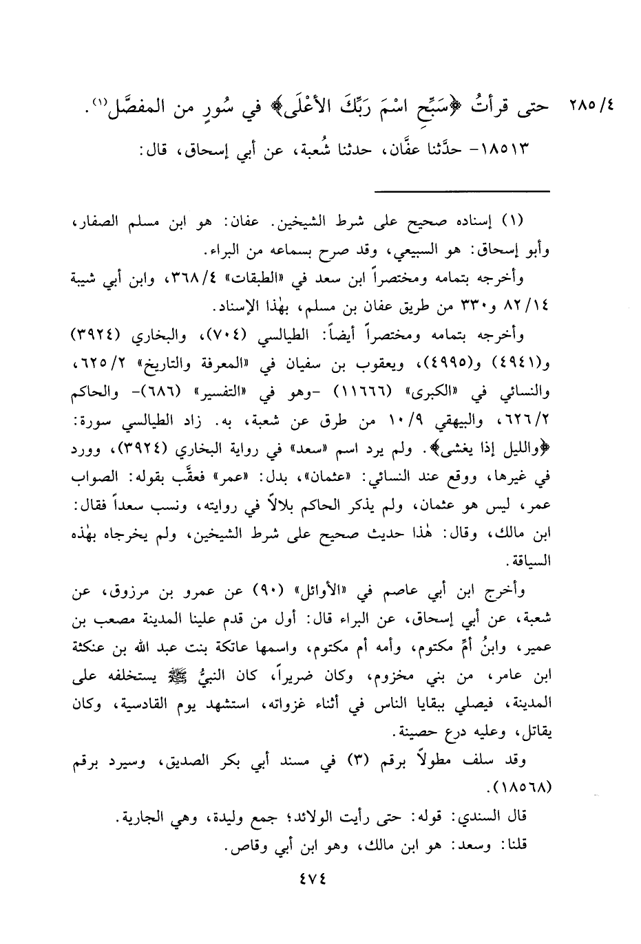 ١٨٥١٣ - حَدَّثَنَا عَفَّانُ، حَدَّثَنَا شُعْبَةُ، عَنْ أَبِي إِسْحَاقَ، قَالَ: