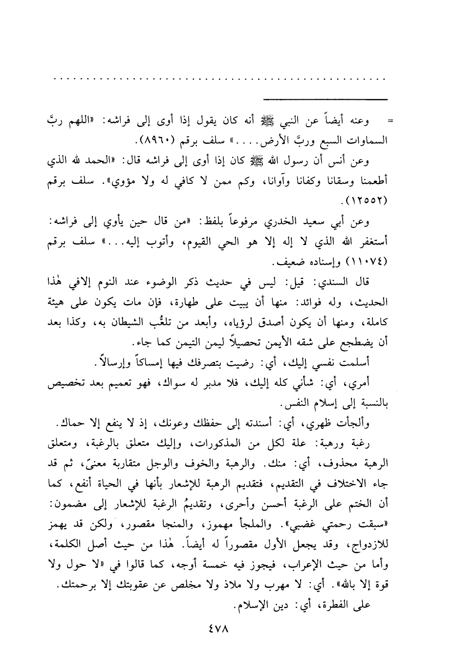 وعن أنس أن رسول الله صَلَّى اللهُ عَلَيْهِ وَسَلَّمَ كان إذا أوى إلى فراشه قال: "الحمد لله الذي أطعمنا وسقانا وكفانا وآوانا، وكم ممن لا كافي له ولا مؤوي". سلف برقم (١٢٥٥٢) .