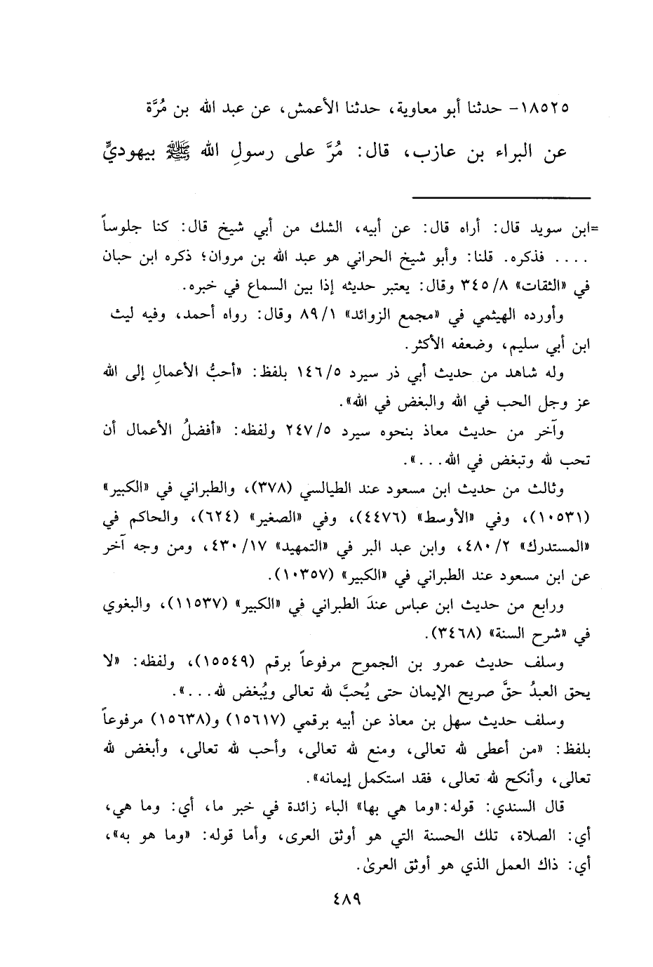 ١٨٥٢٥ - حَدَّثَنَا أَبُو مُعَاوِيَةَ، حَدَّثَنَا الْأَعْمَشُ، عَنْ عَبْدِ اللهِ بْنِ مُرَّةَ، عَنِ الْبَرَاءِ بْنِ عَازِبٍ، قَالَ: مُرَّ عَلَى رَسُولِ اللهِ صَلَّى اللهُ عَلَيْهِ وَسَلَّمَ، بِيَهُودِيٍّ