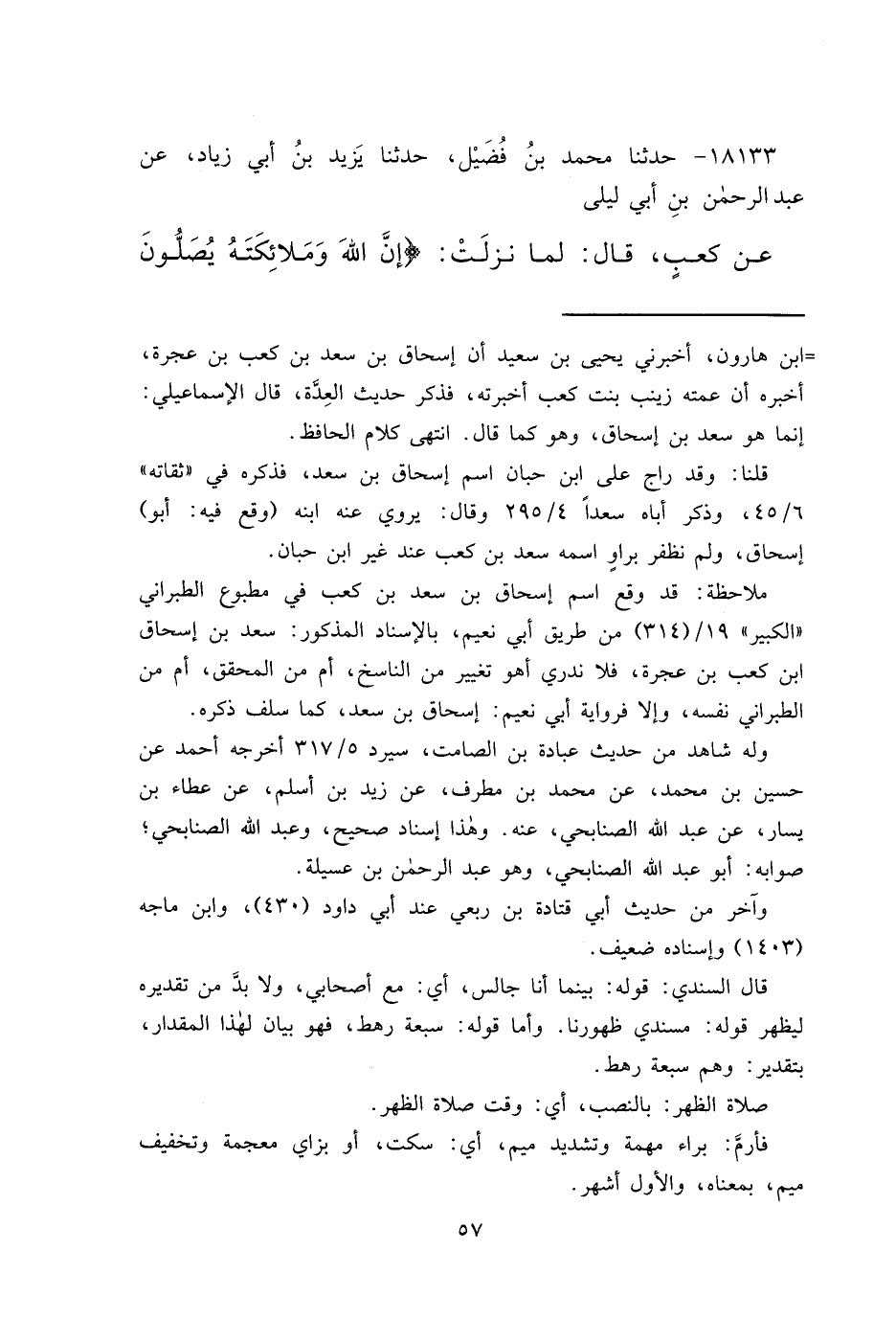 ١٨١٣٣ - حَدَّثَنَا مُحَمَّدُ بْنُ فُضَيْلٍ، حَدَّثَنَا يَزِيدُ بْنُ أَبِي زِيَادٍ، عَنْ عَبْدِ الرَّحْمَنِ بْنِ أَبِي لَيْلَى، عَنْ كَعْبٍ، قَالَ: لَمَّا نَزَلَتْ {إِنَّ اللهَ وَمَلَائِكَتَهُ يُصَلُّونَ