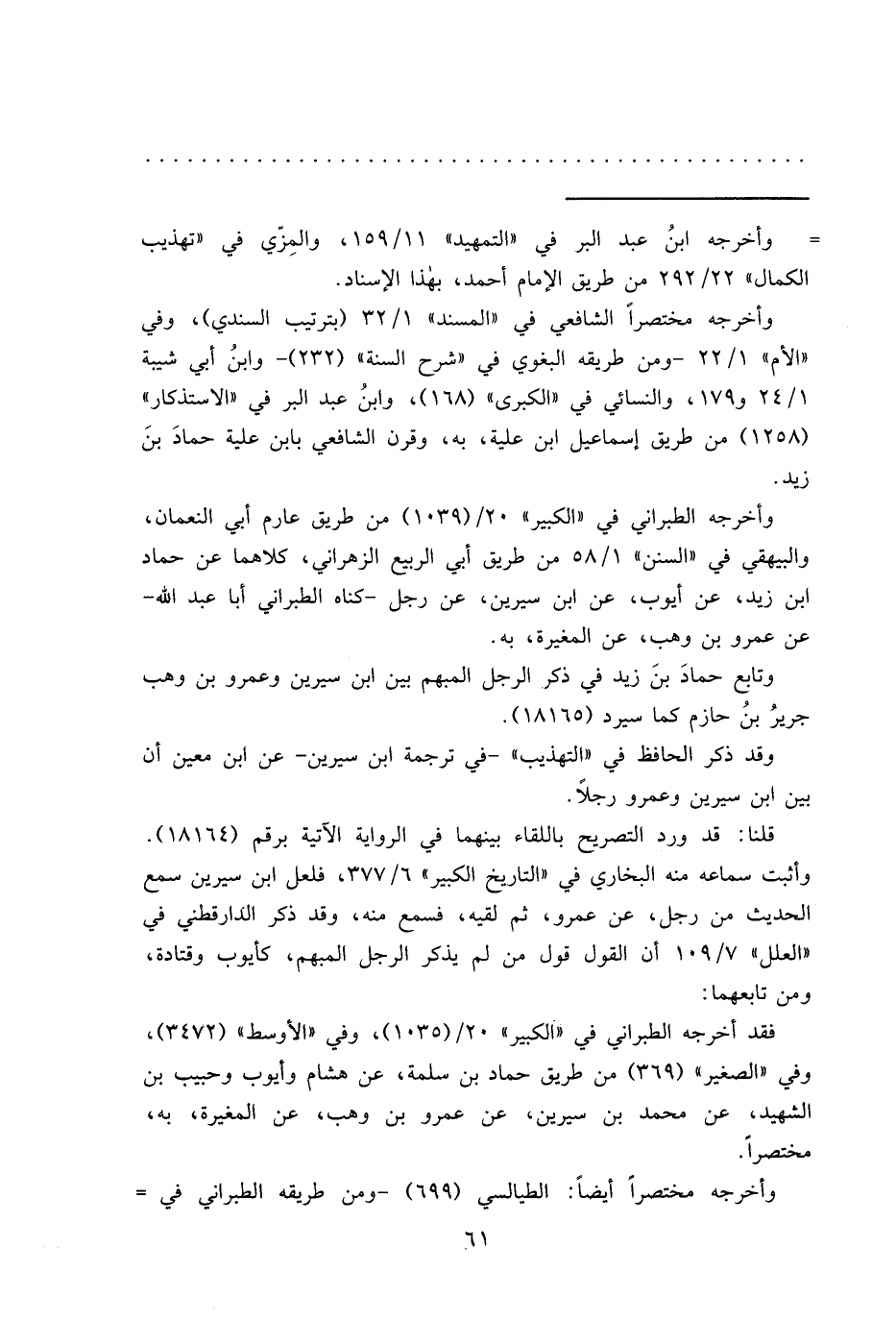 وتابع حمادَ بنَ زيد في ذكر الرجل المبهم بين ابن سيرين وعمرو بن وهب جريرُ بنُ حازم كما سيرد (١٨١٦٥) .