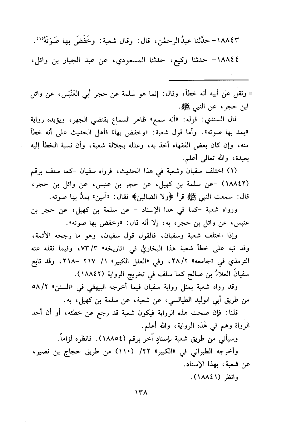 = ونقل عن أبيه أنه خطأ، وقال: إنما هو سلمة عن حجر أبي العَنْبَس، عن وائل ابن حجر، عن النبي صَلَّى اللهُ عَلَيْهِ وَسَلَّمَ.
