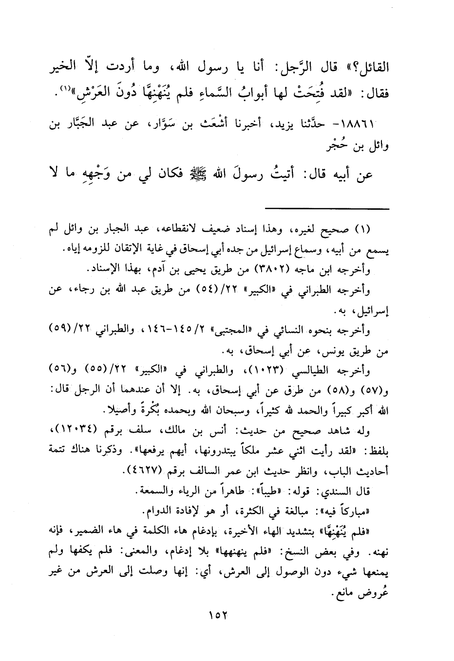 (١) صحيح لغيره، وهذا إسناد ضعيف لانقطاعه، عبد الجبار بن وائل لم يسمع من أبيه، وسماع إسرائيل من جده أبي إسحاق في غاية الإتقان للزومه إياه.