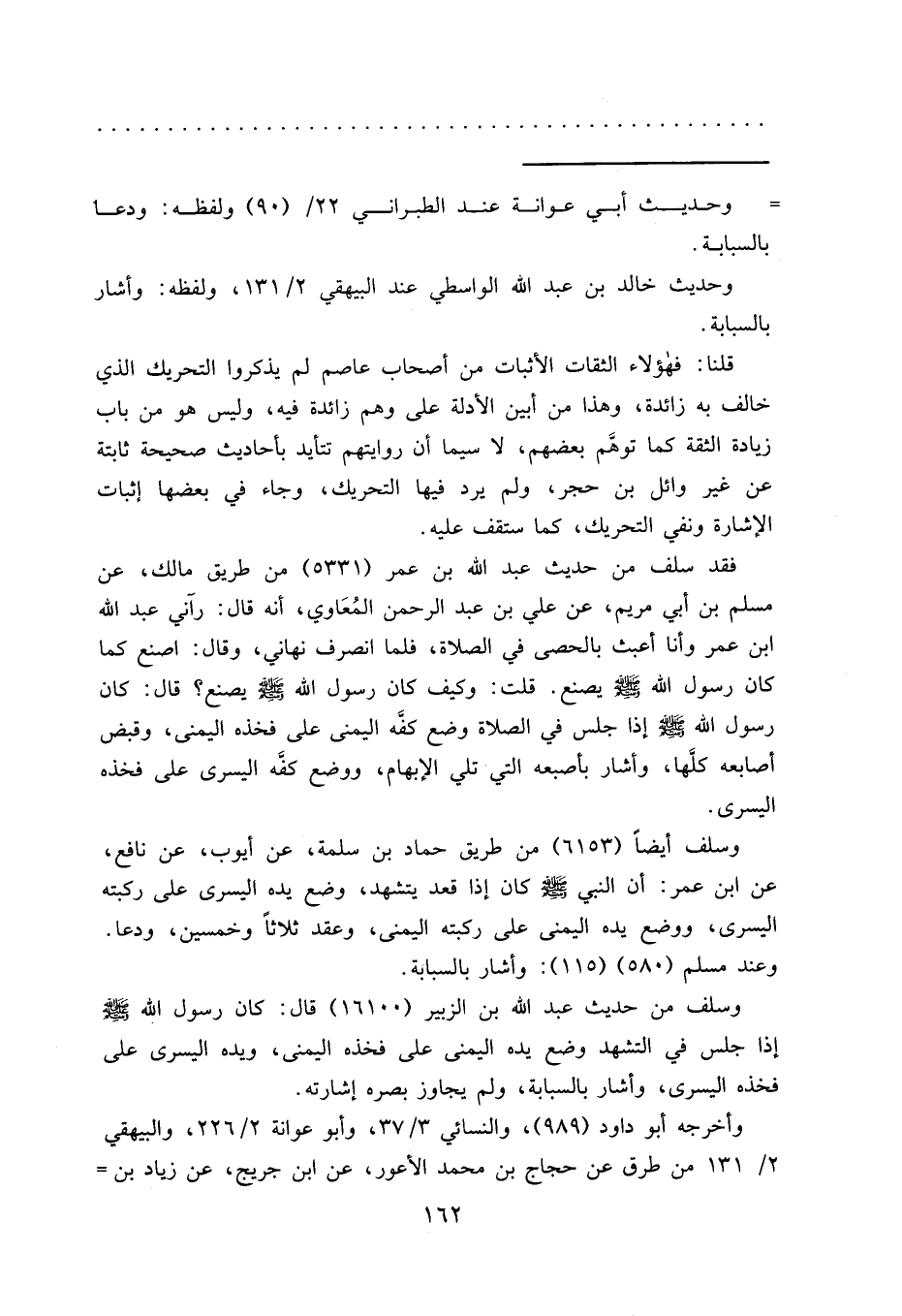 وحديث خالد بن عبد الله الواسطي عند البيهقي ٢/١٣١، ولفظه: وأشار بالسبابة.
