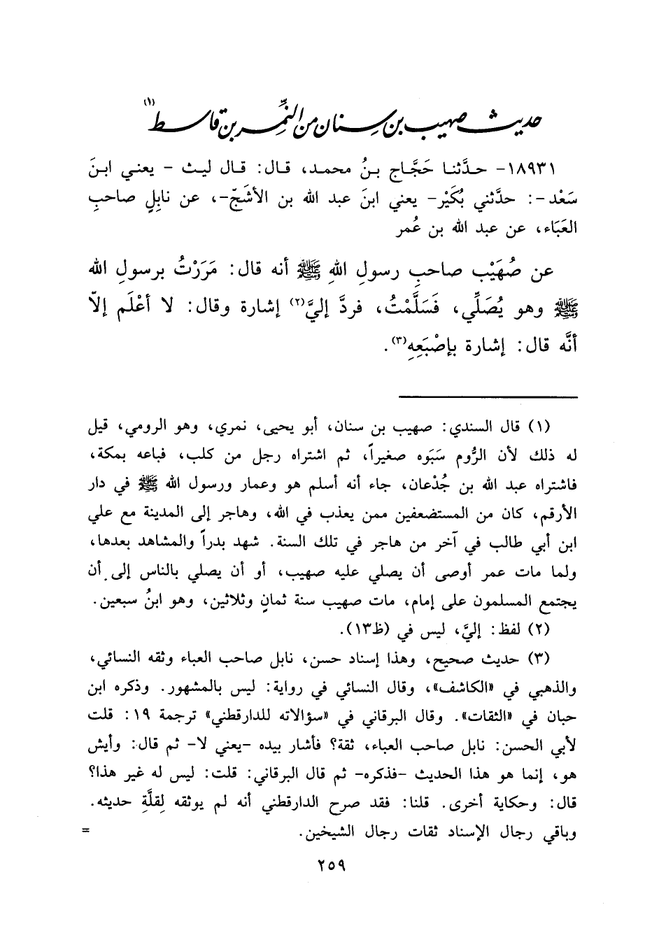 حَدِيثُ صُهَيْبِ بْنِ سِنَانٍ مِنَ النَّمِرِ بْنِ قَاسِطٍ (١)