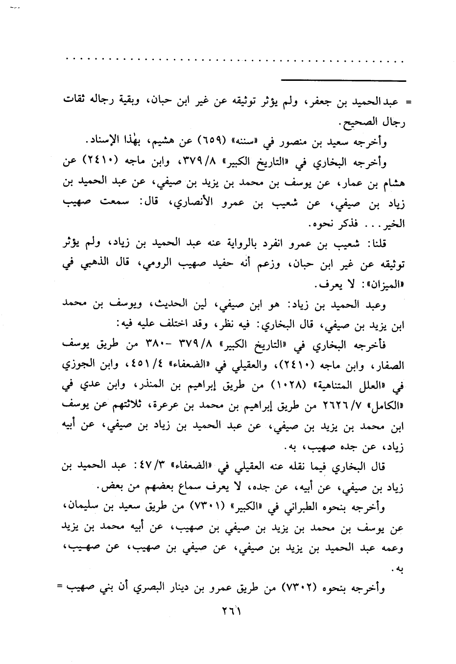 وأخرجه البخاري في "التاريخ الكبير" ٨/٣٧٩، وابن ماجه (٢٤١٠) عن هشام بن عمار، عن يوسف بن محمد بن يزيد بن صيفي، عن عبد الحميد بن زياد بن صيفي، عن شعيب بن عمرو الأنصاري، قال: سمعت صهيب الخير ... فذكر نحوه.