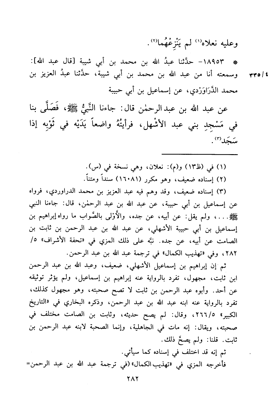 ٢٨٢، وفي "تهذيب الكمال" في ترجمة عبد الله بن عبد الرحمن.