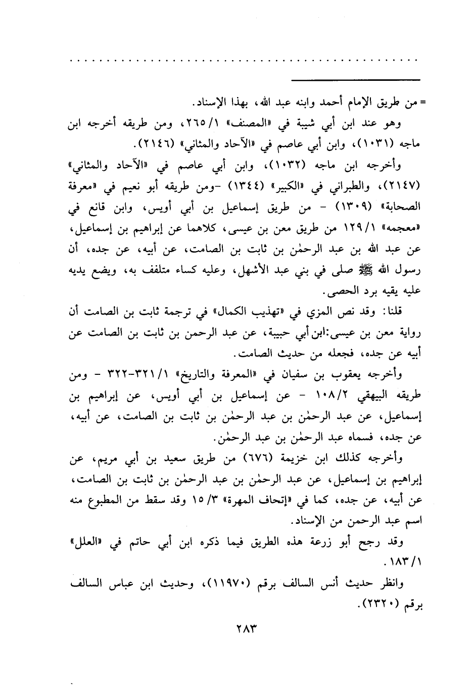قلنا: وقد نص المزي في "تهذيب الكمال" في ترجمة ثابت بن الصامت أن رواية معن بن عيسى: ابن أبي حبيبة، عن عبد الرحمن بن ثابت بن الصامت عن أبيه عن جده، فجعله من حديث الصامت.