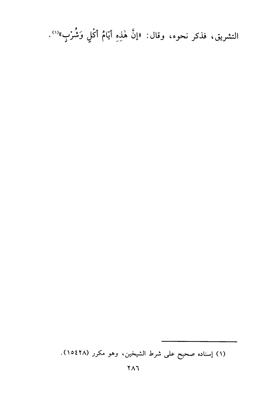 التَّشْرِيقِ، فَذَكَرَ نَحْوَهُ وَقَالَ: " إِنَّ هَذِهِ أَيَّامُ أَكْلٍ وَشُرْبٍ " (١)