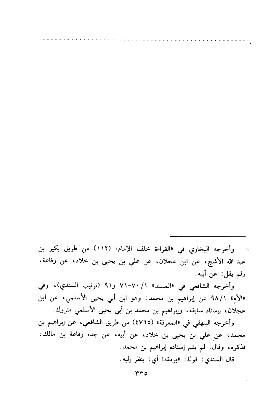 وأخرجه البيهقي في "المعرفة" (٤٧٦٥) من طريق الشافعي، عن إبراهيم بن محمد، عن علي بن يحيى بن خلاد، عن أبيه، عن جده رفاعة بن مالك، فذكره، وقال: لم يقم إسناده إبراهيم بن محمد.
