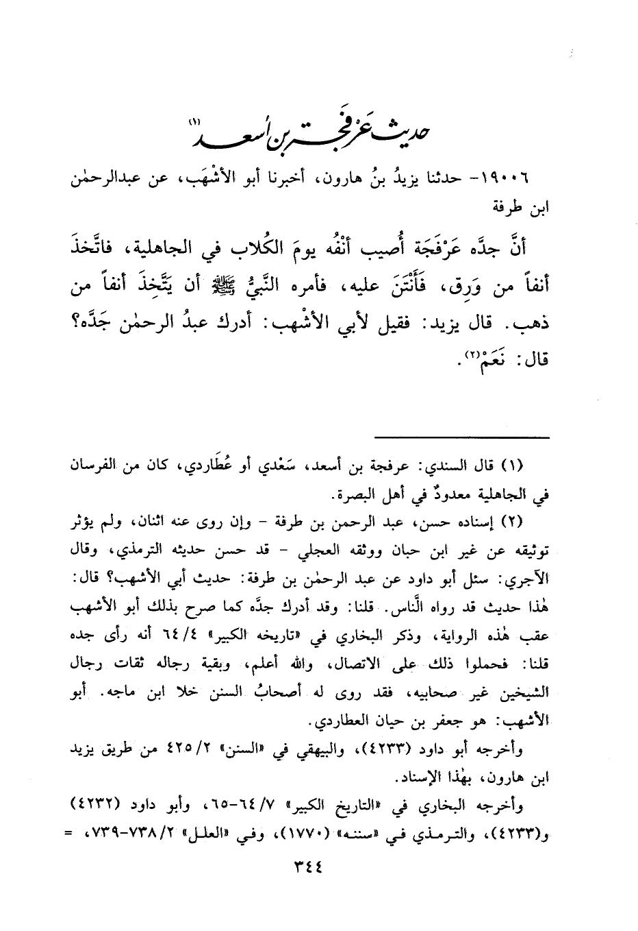 حَدِيثُ عَرْفَجَةَ بْنِ أَسْعَدَ (١)