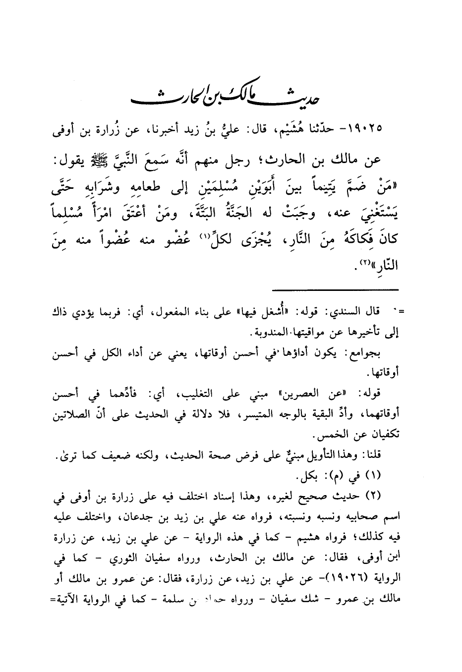 حَدِيثُ مَالِكِ بْنِ الْحَارِثِ