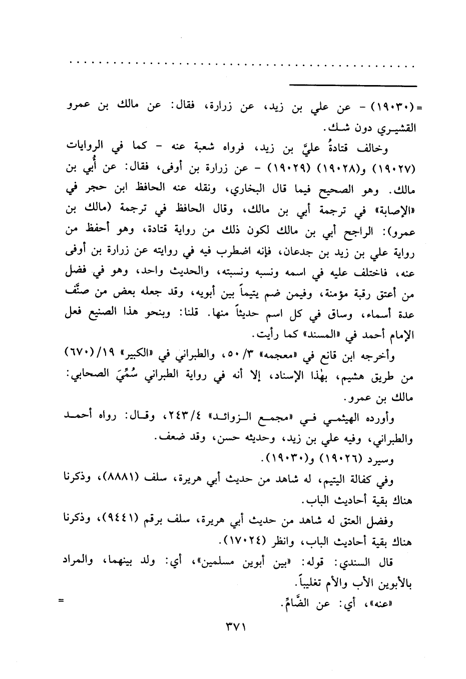= (١٩٠٣٠) - عن علي بن زيد، عن زرارة، فقال: عن مالك بن عمرو القشيري دون شك.