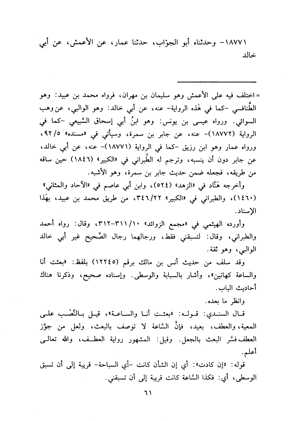 ١٨٧٧١ - وحَدَّثَنَاهُ أَبُو الْجَوَّابِ، حَدَّثَنَا عَمَّارٌ، عَنْ الْأَعْمَشِ، عَنْ أَبِي خَالِدٍ،