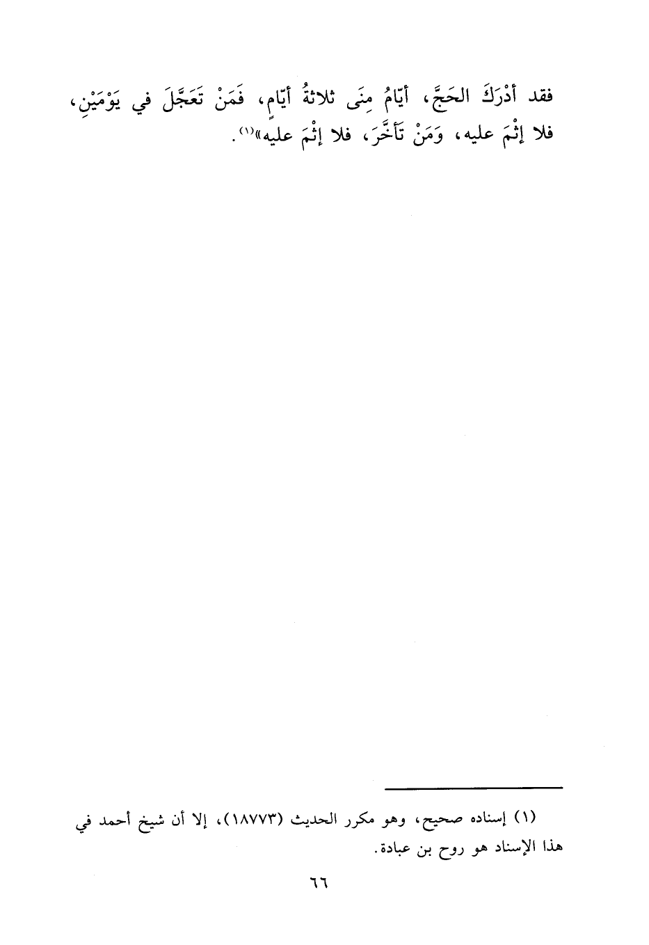 فَقَدْ أَدْرَكَ الْحَجَّ أَيَّامُ مِنًى ثَلَاثَةُ أَيَّامٍ، فَمَنْ تَعَجَّلَ فِي يَوْمَيْنِ فَلَا إِثْمَ عَلَيْهِ، وَمَنْ تَأَخَّرَ فَلَا إِثْمَ عَلَيْهِ " (١)