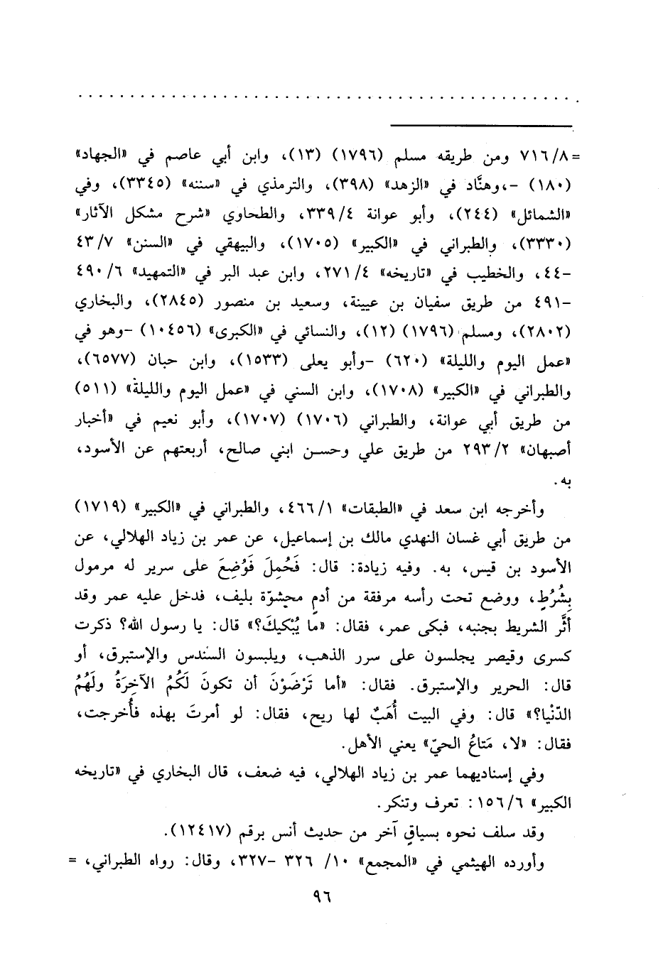 = ٨/٧١٦ ومن طريقه مسلم (١٧٩٦) (١٣) ، وابن أبي عاصم في "الجهاد" (١٨٠) -، وهنَّاد في "الزهد" (٣٩٨) ، والترمذي في "سننه" (٣٣٤٥) ، وفي "الشمائل" (٢٤٤) ، وأبو عوانة ٤/٣٣٩، والطحاوي "شرح مشكل الآثار" (٣٣٣٠) ، والطبراني في "الكبير" (١٧٠٥) ، والبيهقي في "السنن" ٧/٤٣ -٤٤، والخطيب في "تاريخه" ٤/٢٧١، وابن عبد البر في "التمهيد" ٦/٤٩٠ -٤٩١ من طريق سفيان بن عيينة، وسعيد بن منصور (٢٨٤٥) ، والبخاري (٢٨٠٢) ، ومسلم (١٧٩٦) (١٢) ، والنسائي في "الكبرى" (١٠٤٥٦) - وهو في "عمل اليوم والليلة" (٦٢٠) - وأبو يعلى (١٥٣٣) ، وابن حبان (٦٥٧٧) ، والطبراني في "الكبير" (١٧٠٨) ، وابن السني في "عمل اليوم والليلة" (٥١١) من طريق أبي عوانة، والطبراني (١٧٠٦) (١٧٠٧) ، وأبو نعيم في "أخبار أصبهان" ٢/٢٩٣ من طريق علي وحسن ابني صالح، أربعتهم عن الأسود، به.